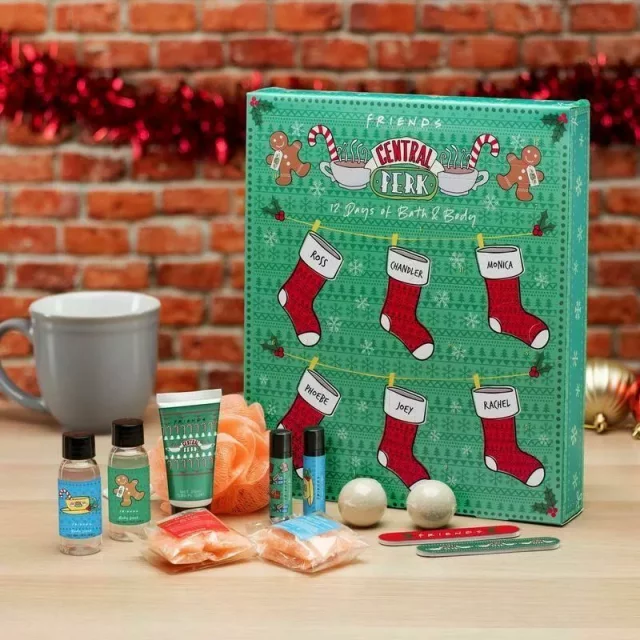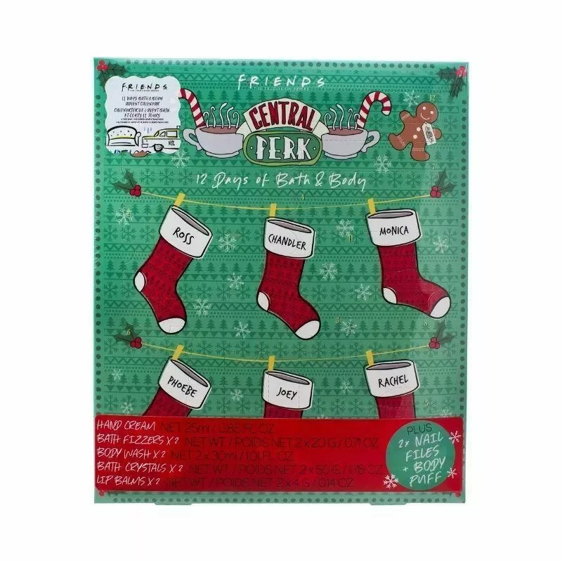 Diätvariante des Adventskalenders, aus dem nicht jeden Tag eine Schokolade, sondern Badeartikel fallen, die vor allem Fans der Serienhits Friends erfreuen werden. Sie können sich auf Körpermilch, Badesalze, Balsame und weitere Geschenke mit Thematik aus der Serie freuen.Hersteller: Paladone