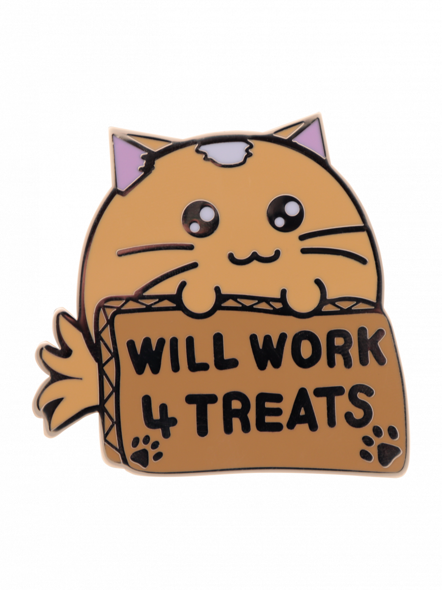 Ein süßer Pin aus einer limitierten Edition, der sofort die Herzen aller Fuzzballs-Fans erobert. Whisky hält sein ikonisches Schild „Will Work 4 Treats“ und ist der perfekte Mix aus Niedlichkeit und Humor.