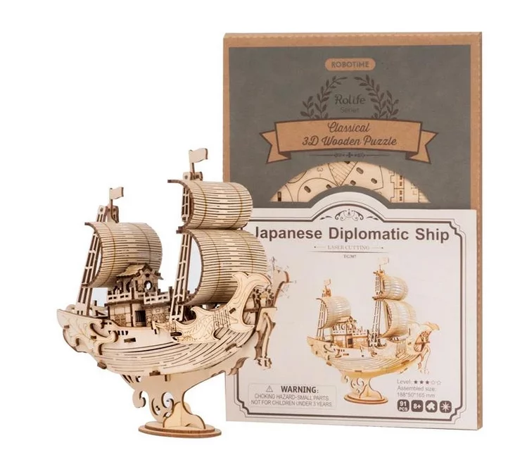 Dieses Schiffsmodell ist ein einzigartiger Holzbausatz von Robotime. Alles, was ihr zum Zusammenbau benötigt, ist bereits im Lieferumfang enthalten. Es eignet sich hervorragend als lehrreiches Zubehör und als Geschenk - z.B. für Liebhaber Japans oder der Seefahrt. Die Holzteile können bemalt werden, sodass eine farbenfrohe Dekoration entsteht.Größe: 188 x 50 x 165 mm
