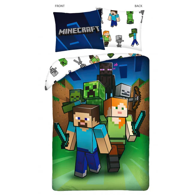 Angenehme Baumwollbettwäsche mit Motiven des beliebten Spiels Minecraft. Hergestellt aus verschiedenen Farben von Baumwolle.