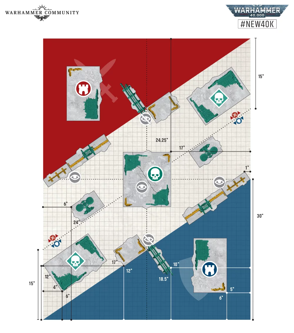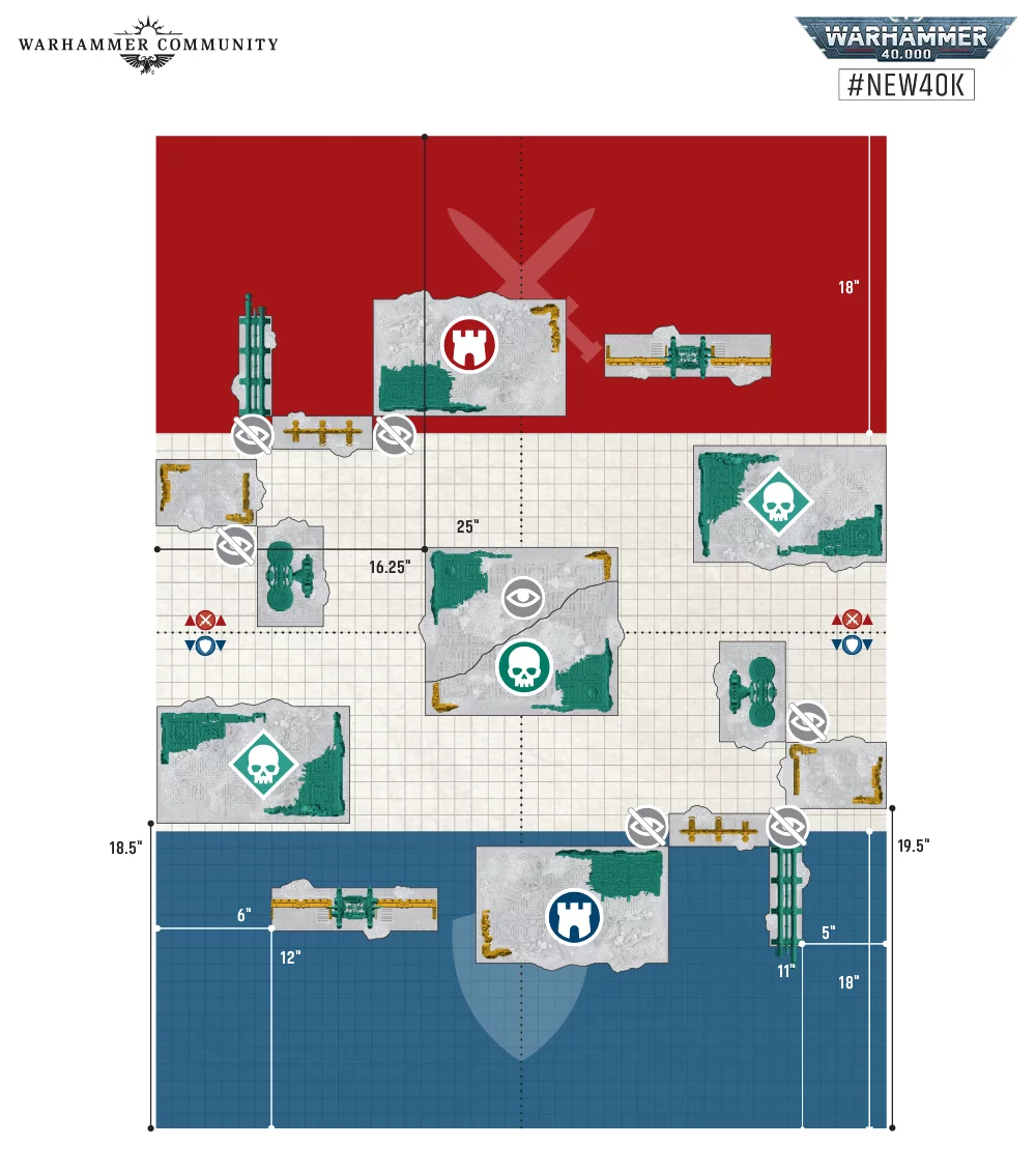 Das Deployment bleibt wie in der 10. Edition unverändert (jede Mission hat zudem ein empfohlenes Layout).