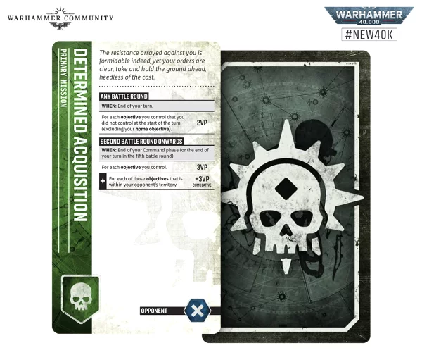 Detachments bestimmen nun auch eine oder mehrere sogenannte Force Dispositions für eure Armee. Insgesamt gibt es fünf: Take and Hold, Disruption, Purge the Foe, Priority Assets und Reconnaissance. Force Dispositions sollen den Spielstil eurer Armee auf Basis der gewählten Detachments widerspiegeln. Spielt ihr eine aggressive Armee, werden euch Missionen für offensives Vorgehen belohnen, während ruhige und unauffällige Armeen eher für Aktionen und das Vermeiden von Konflikten belohnt werden. Nahezu alle Missionen werden zudem auch über das Halten von Objekten gewertet.