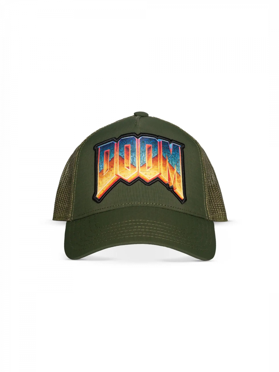 Macht euch bereit für Dämonen und Sommerhitze! Diese olivgrüne Trucker-Cap mit dem massiven DOOM-Logo ist das ultimative Accessoire für alle Slayer.