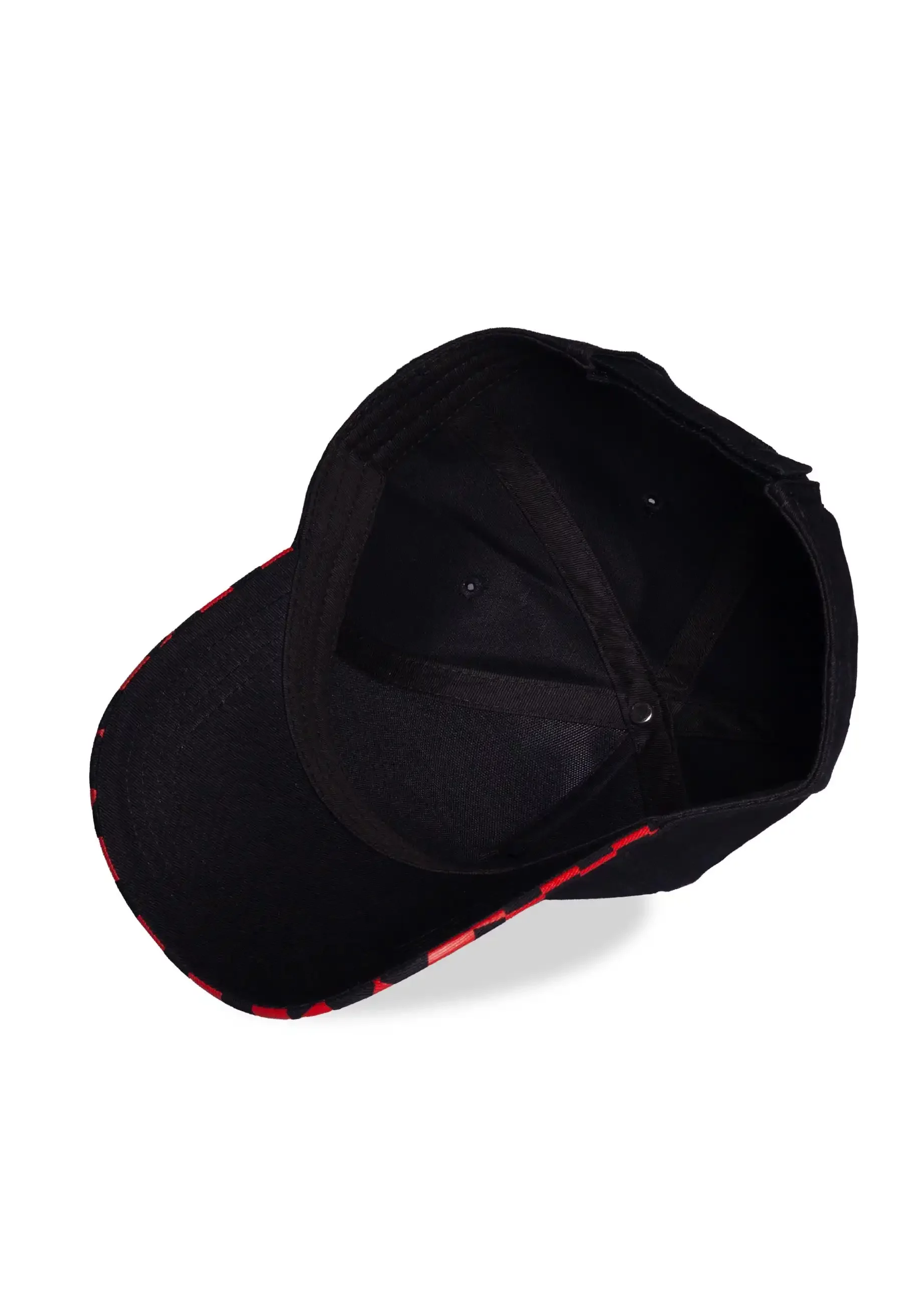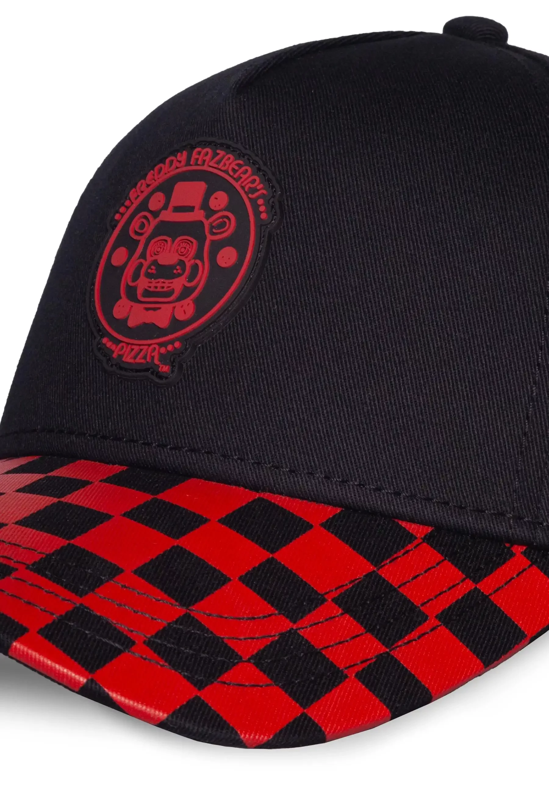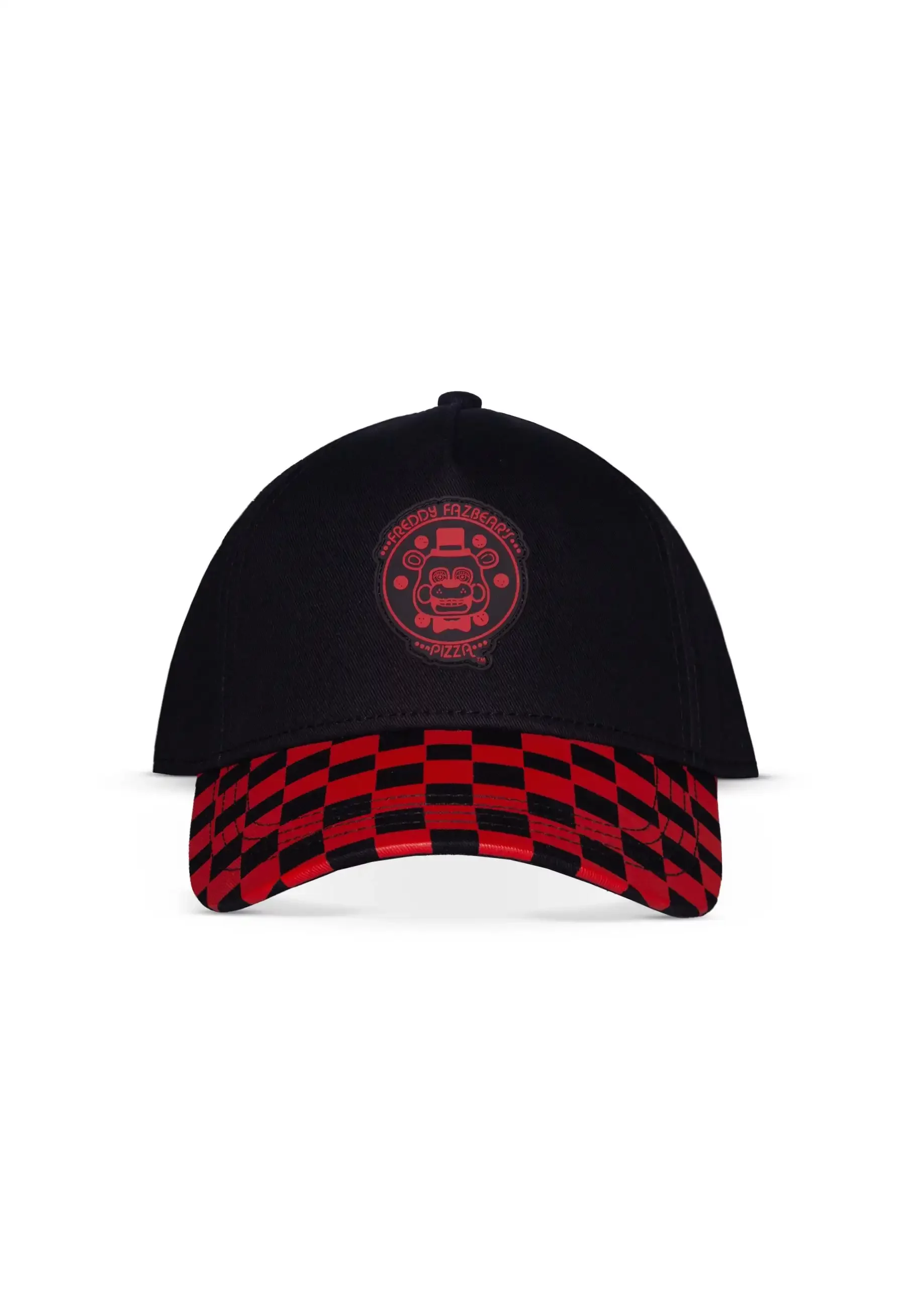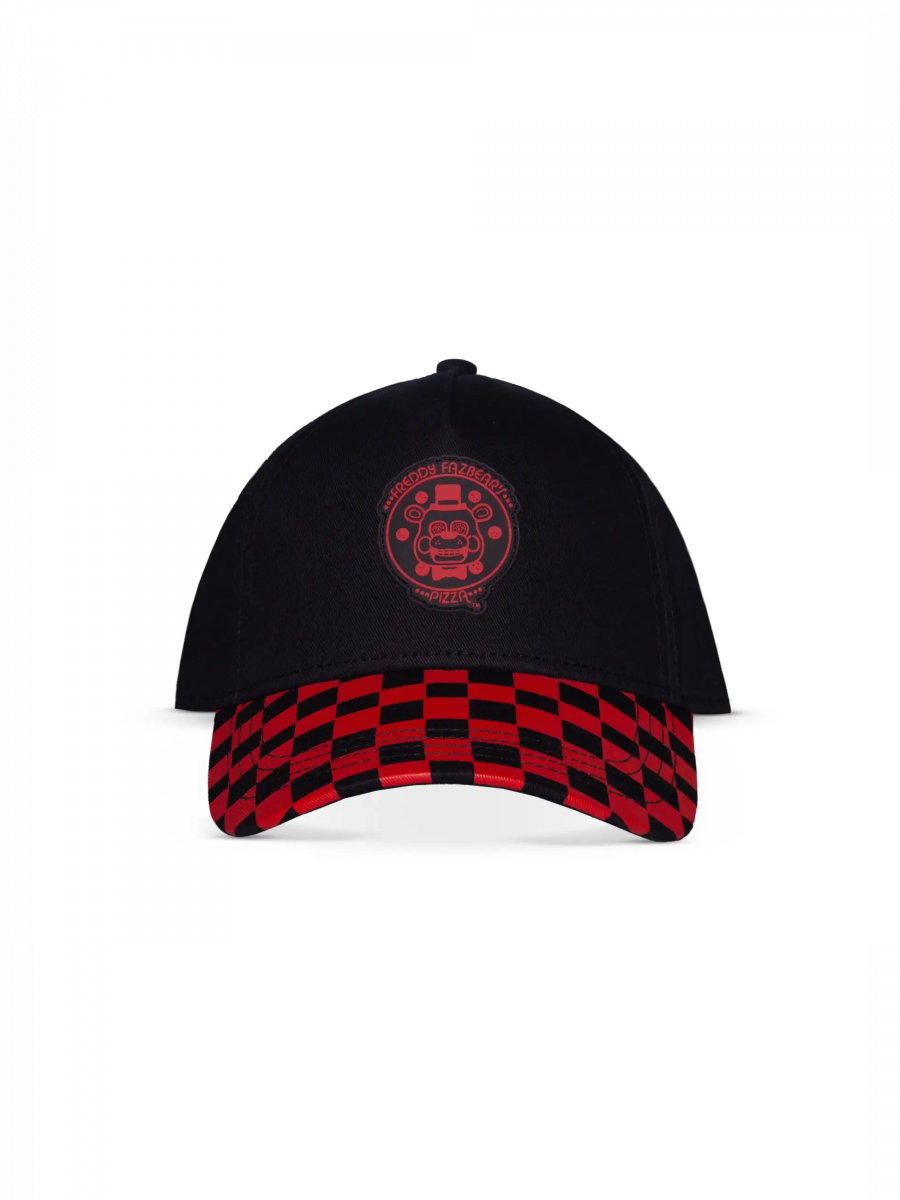 Coole schwarze Cap, inspiriert von der Horrorreihe Five Nights At Freddy's, mit auffälligem roten Logo von Freddy Fazbear’s Pizza auf der Vorderseite und kariertem Muster am Schirm. Dank des verstellbaren Verschlusses hinten passt sie den meisten Größen. Das ideale Accessoire für Fans, die ihre Liebe zu FNAF auch außerhalb des Spiels zeigen möchten.Größe: einstellbar