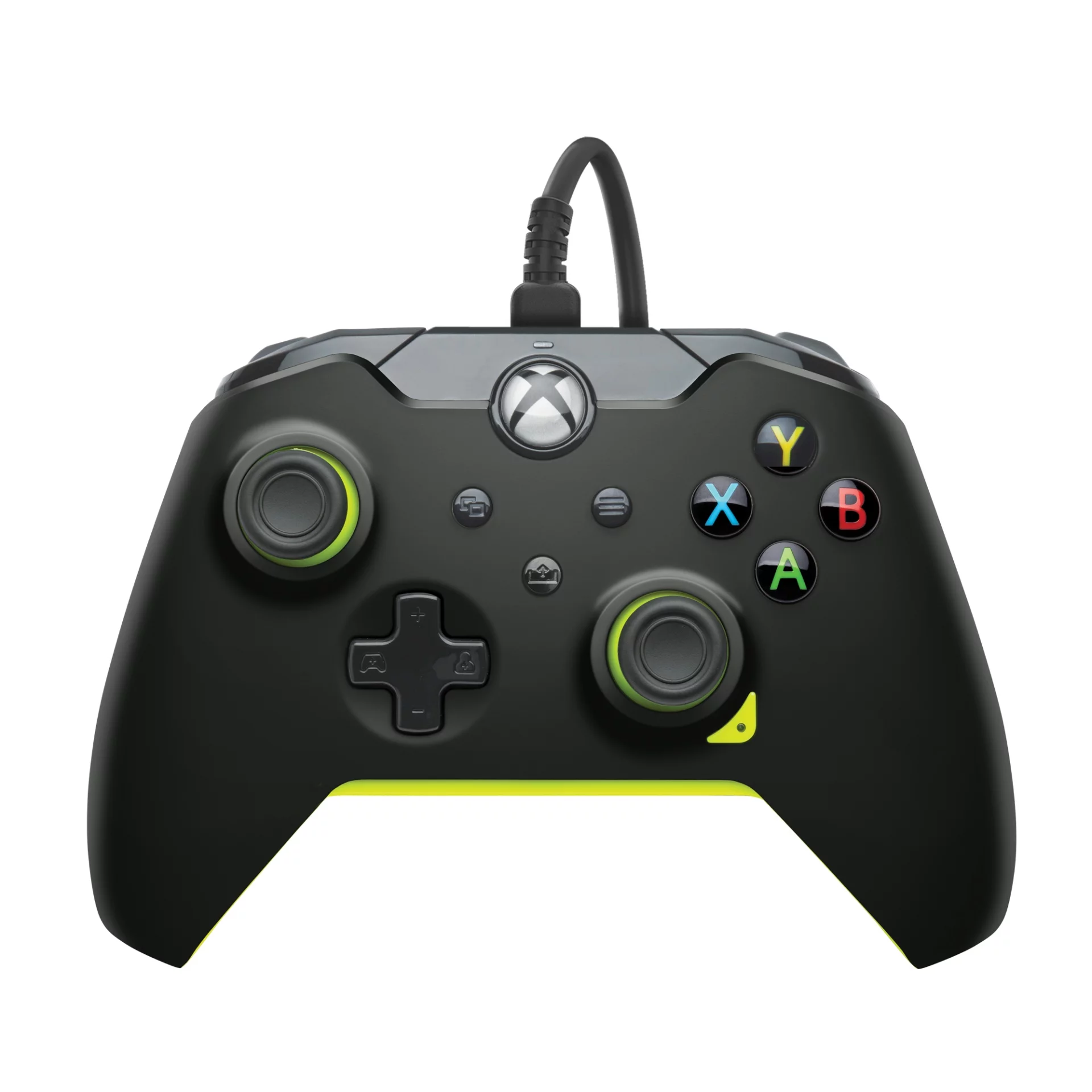 Der PDP Electric Black Controller für Xbox Series X|S, Xbox One und Windows kombiniert ein elegantes schwarzes Design mit neongrünen Akzenten, die ihm einen energiegeladenen Look verleihen.
