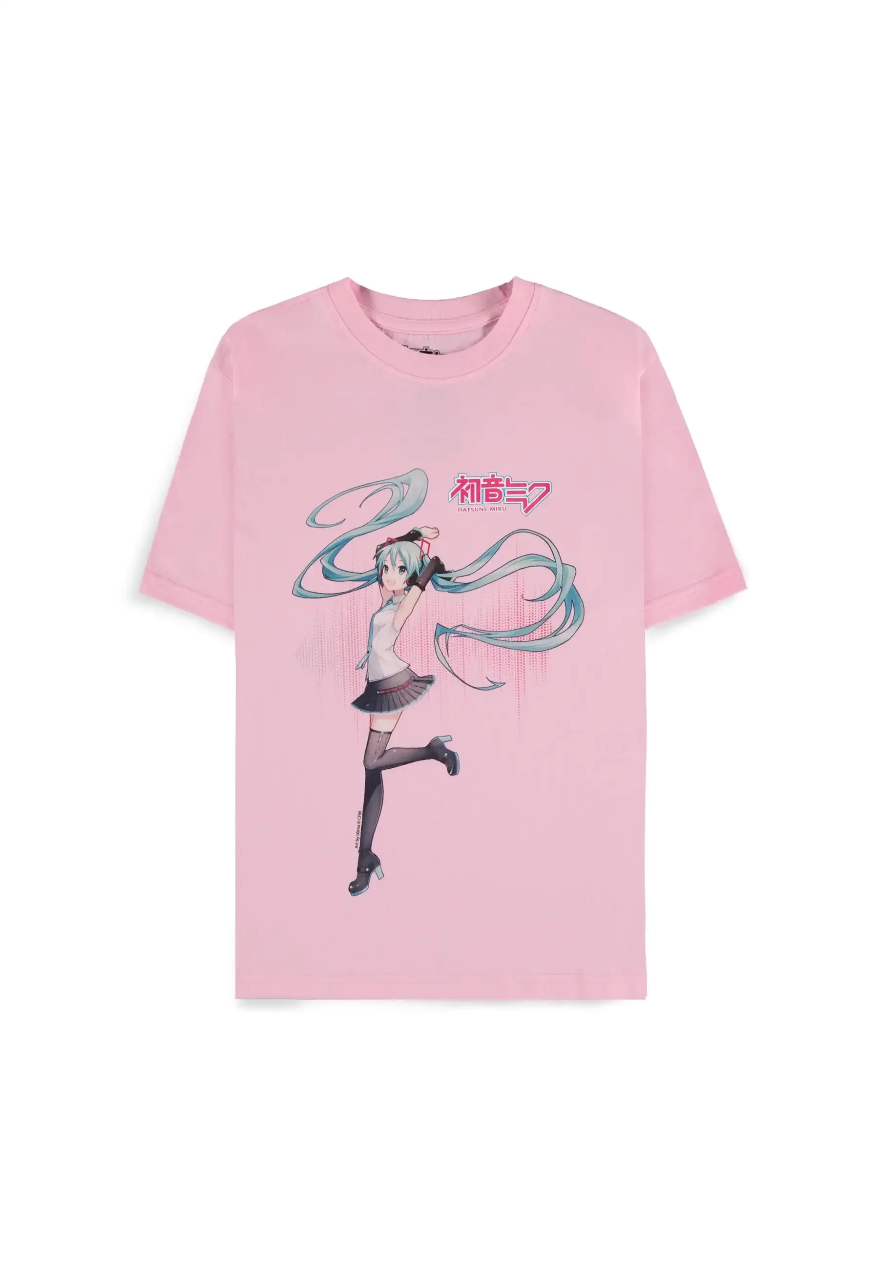 Niedliches rosa T-Shirt mit der legendären virtuellen Sängerin Hatsune Miku, die mit ihrem Style und ihrer Energie jedes Outfit zum Strahlen bringt.