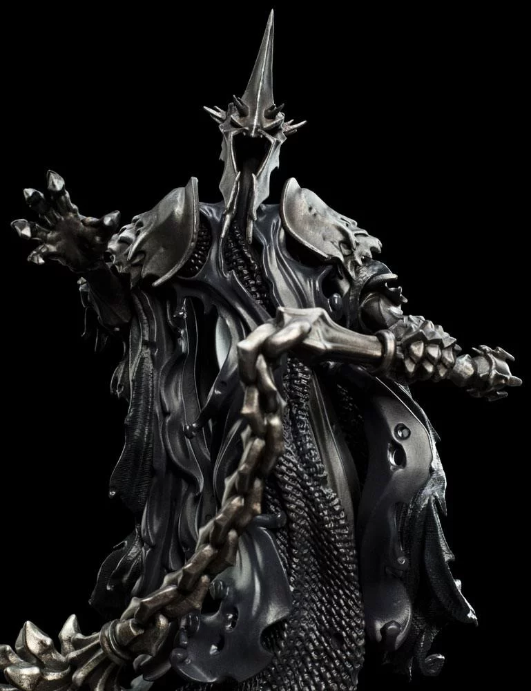 Weta Workshop hat ihm den für die Mini-Epics-Serie typischen stilisierten Look verliehen und dabei dennoch alle furchteinflößenden Details bewahrt – von den zerfallenden Säumen des Gewands bis hin zur Struktur der Rüstung und der dramatischen, bewegungsreichen Pose. Mit einer Höhe von 18 cm ist er ein markantes Sammlerstück, das auf jedem Regal sofort ins Auge fällt.