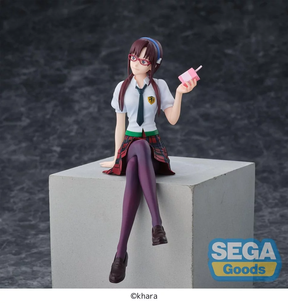 Mari Makinami Illustrious erscheint in ihrer eleganten Schuluniform und mit ihrem typischen verspielten Lächeln. Diese Figur aus der Reihe Rebuild of Evangelion: New Theatrical Edition von Sega fängt ihre energiegeladene Persönlichkeit perfekt ein und ist ein cooles Highlight für jede Evangelion-Sammlung.