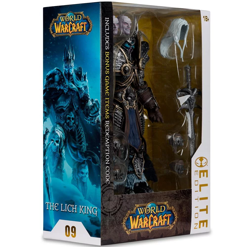Der legendäre Lich King aus der Welt von World of Warcraft erscheint als detailreich gestaltete Figur von McFarlane Toys. Arthas Menethil in seiner ikonischen Rüstung mit dunklem Helm und dem Schwert Frostmourne ist bereit, über Northrend zu herrschen und seine untote Armee zu vergrößern.