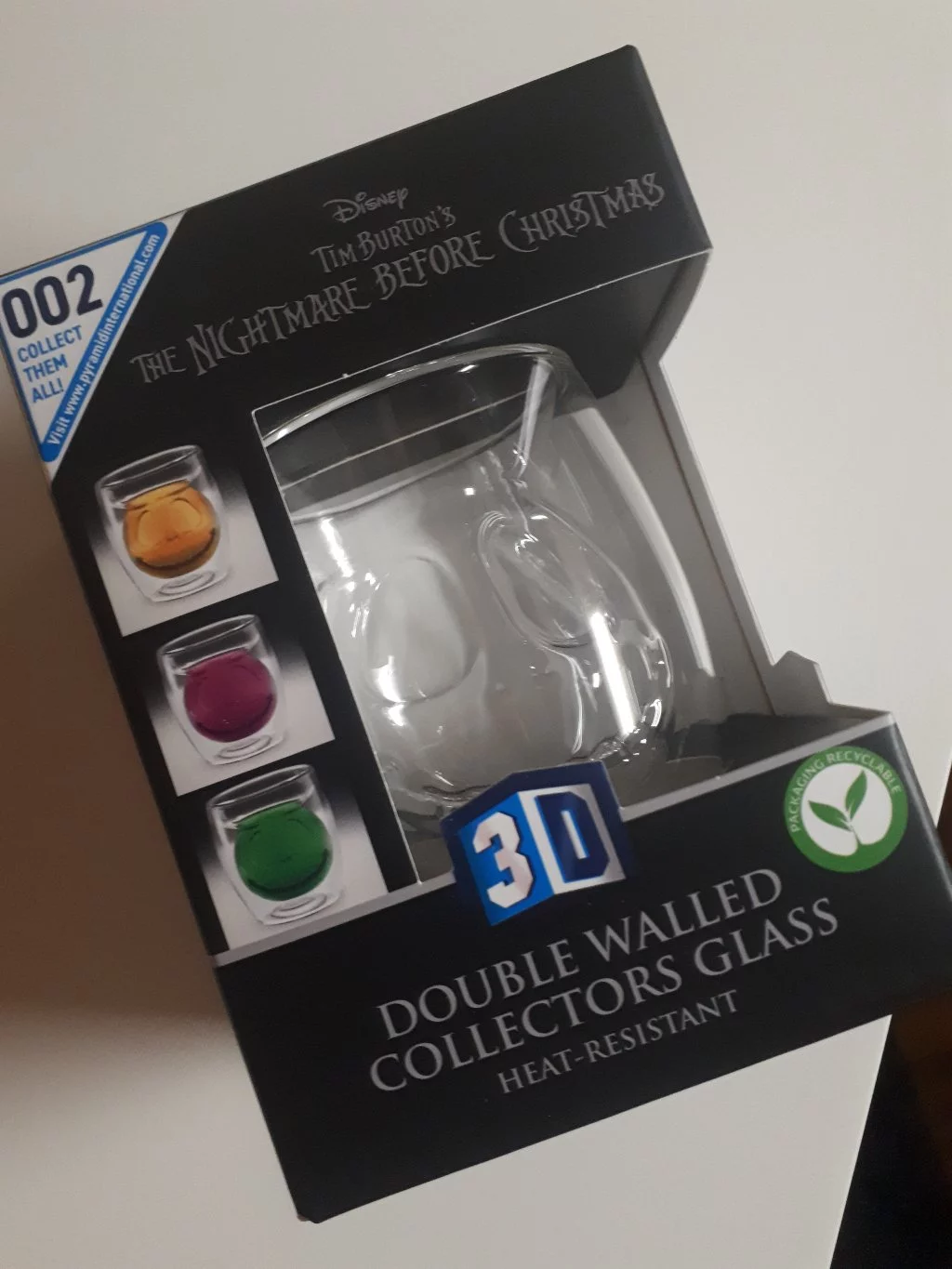 Einzigartiges 3D-Glas mit dem Motiv von Jack Skellington aus dem klassischen Stop-Motion-Weihnachtsfilm The Nightmare Before Christmas.