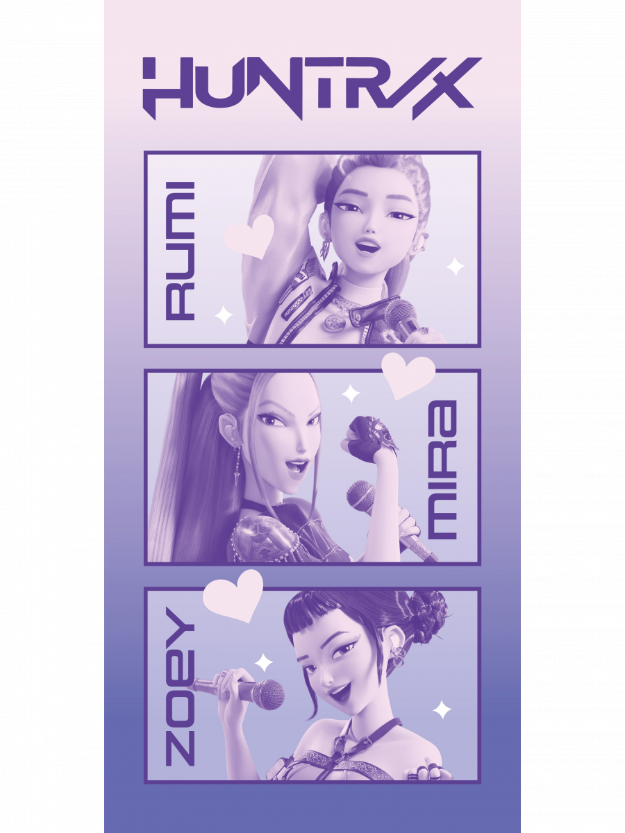 Nehmt die Energie von Huntrix mit an den Pool oder an den Strand. Das Handtuch KPop Demon Hunters – Huntrix zeigt ein cooles violettes Motiv mit den Porträts von Rumi, Mira und Zoey, das die Atmosphäre einer Konzertbühne sofort in jeden Sommertag bringt.