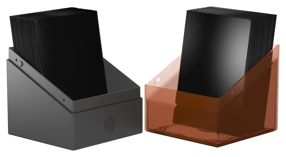 Sie bietet Platz für bis 100 doppelt gesleevte Karten und schützt das Deck dank der stabilen Konstruktion zuverlässig beim Spielen und Transportieren. Der transparente Deckel mit thematischem Druck ergänzt das minimalistische Gehäuse der Box und lässt das einzigartige Design der gesamten Edition besonders gut zur Geltung kommen.