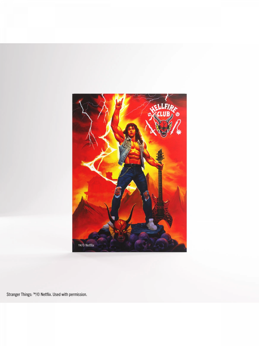 Die Hellfire Club: Eddie Munson Art Sleeves von Gamegenic sind das ideale Premium-Accessoire für alle Stranger Things™-Fans. Offiziell lizenzierte, matte und vollfarbig bedruckte Hüllen zeigen das ikonische Motiv von Eddie Munson und seinen unvergesslichen Metal-Style aus dem Hellfire Club.