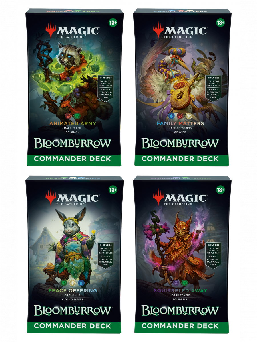 Die Geschichte des Sets spielt auf der Ebene von Bloomburrow, in einer Welt niedlicher anthropomorpher Tiere, in der es keine Menschen gibt.