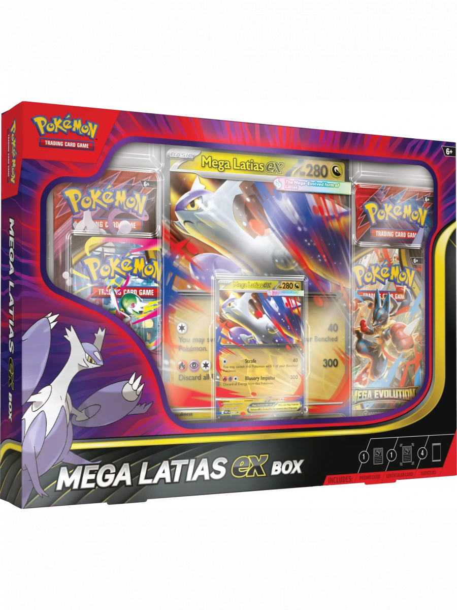 Bereitet euch auf die Kraft der Mega-Entwicklung vor mit Pokémon TCG: ex Box – Mega Latias! Dieses spezielle Set enthält die Promo-Karte Mega Latias EX, zusätzliche Booster und alles, was ihr braucht, um euer Deck zu stärken.