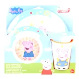 Plastik-Essgeschirrset für die Kleinsten (Teller, Schüssel und Glas) mit Peppa Pig (Peppa Wutz) Motiv. Das Geschirr ist für die Mikrowelle geeignet.