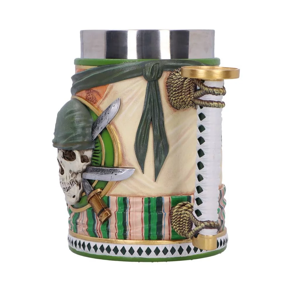 Ein massiver Krug, inspiriert von Roronoa Zoro aus One Piece, der auf den ersten Blick wie eine Trophäe aus einer Piratenexpedition wirkt. Der detaillierte Totenkopf, die Schwerter und der umwickelte Griff evozieren Zoros kompromisslosen Stil und den Weg eines Schwertkämpfers, der niemals zurückweicht.