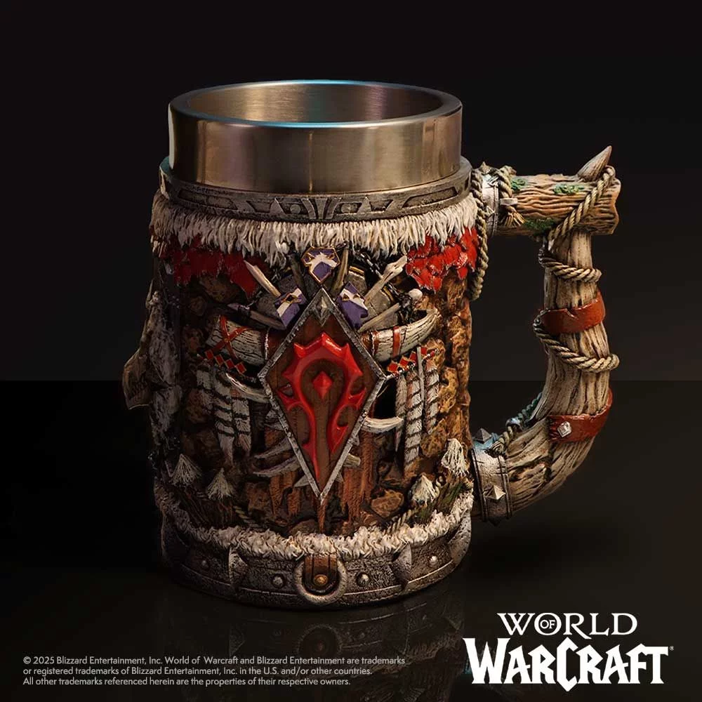 Ein rauer, von der Welt von World of Warcraft inspirierter Krug, der deutlich seine Zugehörigkeit zur Horde zeigt. Das massive Design, das markante rote Emblem und die Kombination aus Stein-, Holz- und Felldetails verkörpern perfekt die rohe Kraft und den Kampfgeist dieser Fraktion.