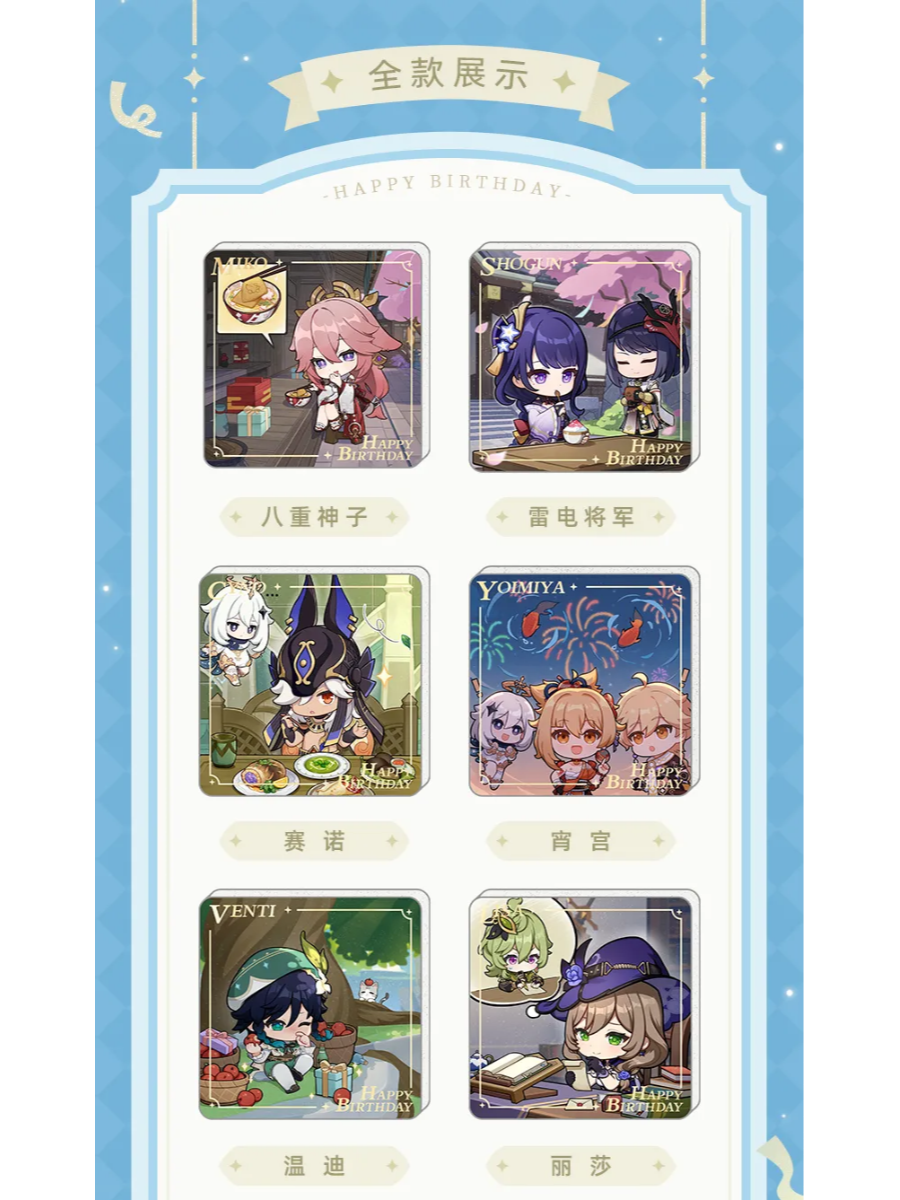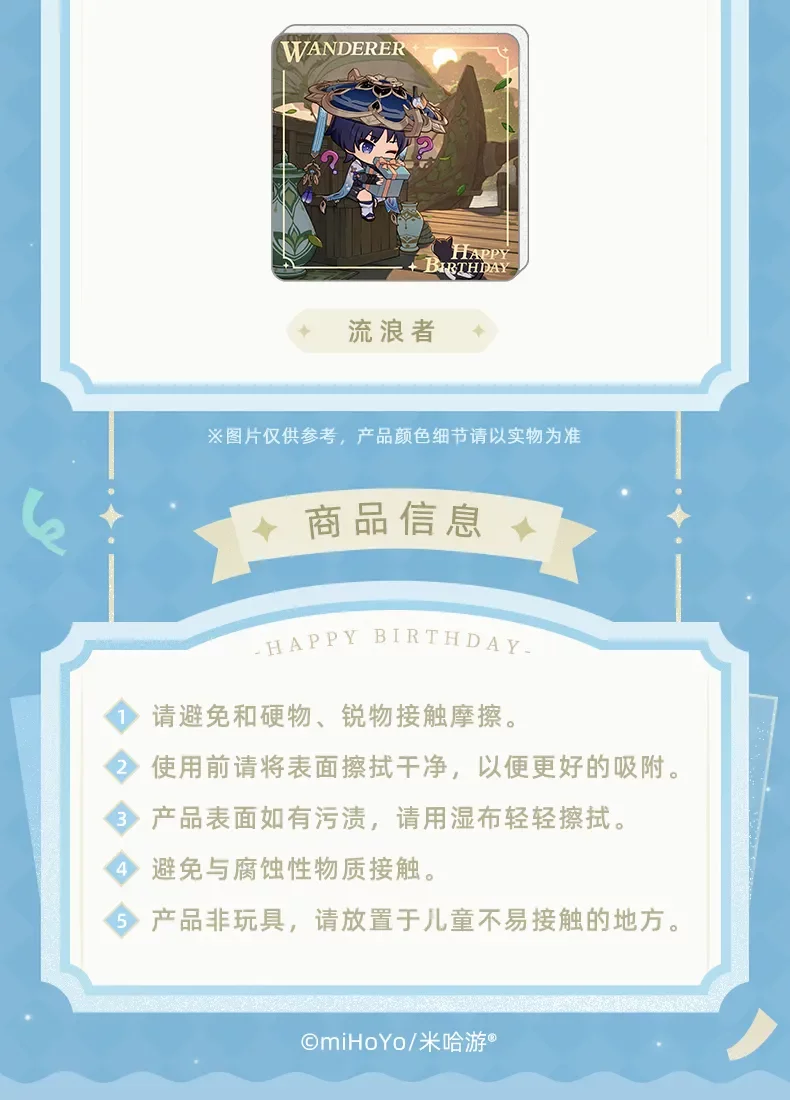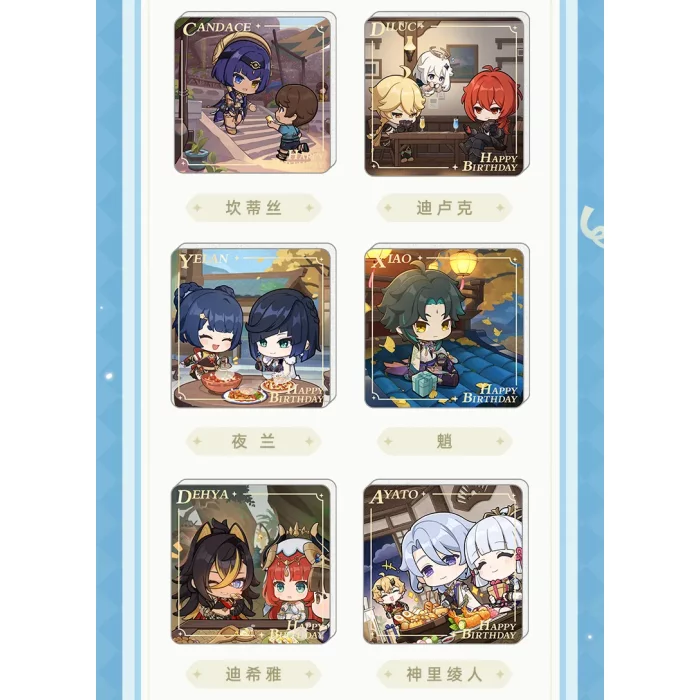 Ein süßer Magnet mit Chibi-Figuren aus Genshin Impact, der bei jedem Blick an eure Lieblingshelden erinnert. Jedes Motiv fängt die einzigartige Atmosphäre der Geburtstage der einzelnen Figuren und ihren typischen Stil ein.