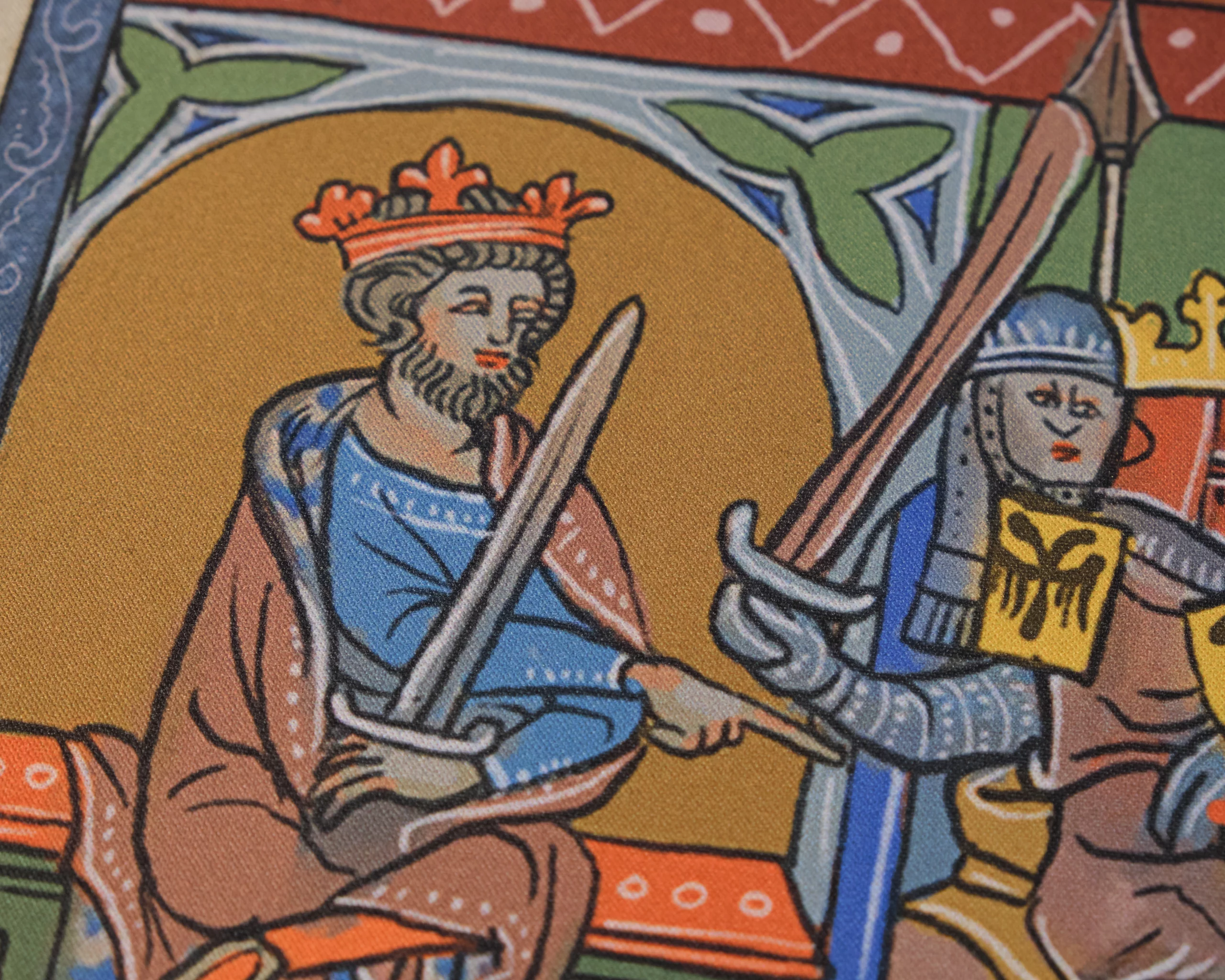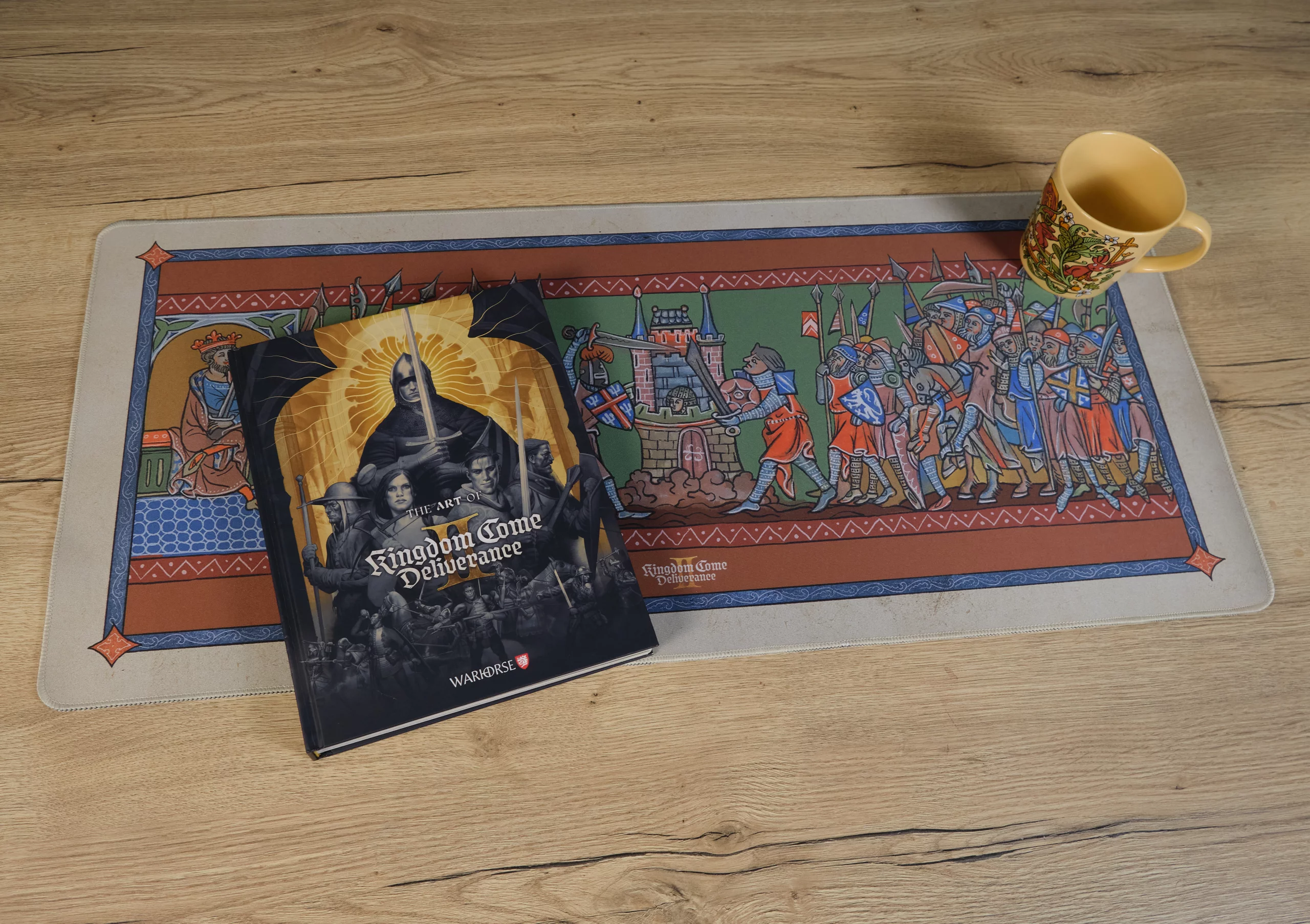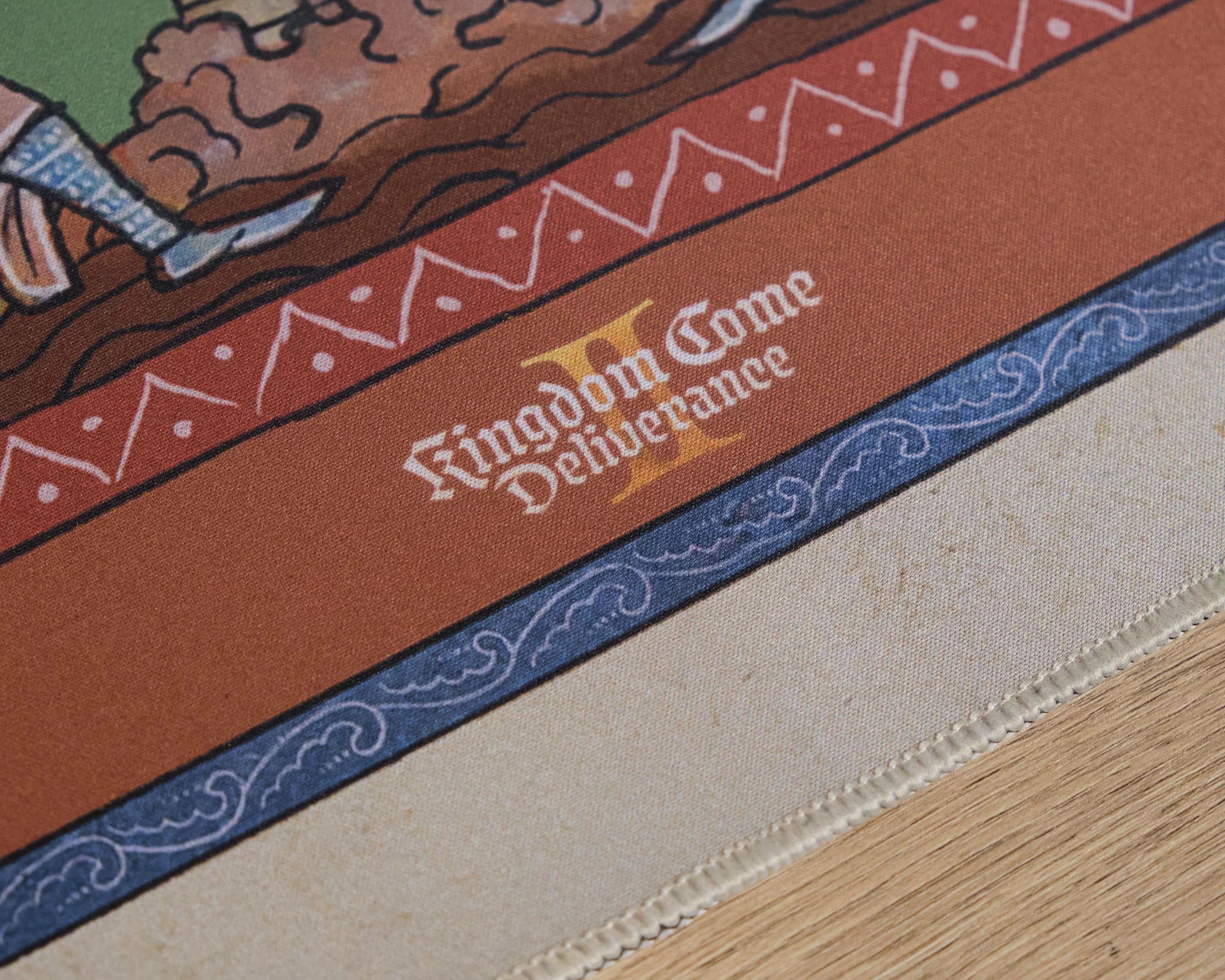 Ein Stück mittelalterlicher Kunst direkt auf eurem Schreibtisch. Eine authentische Illumination, inspiriert von der Zeit von Kingdom Come: Deliverance II, in der sich Helden und Ritter unter königlicher Aufsicht begegnen. Eine stabile, strapazierfähige Unterlage für epische Spielrunden ebenso wie für bäuerliche Arbeitstage. Riesenformat 90 × 40 cm.