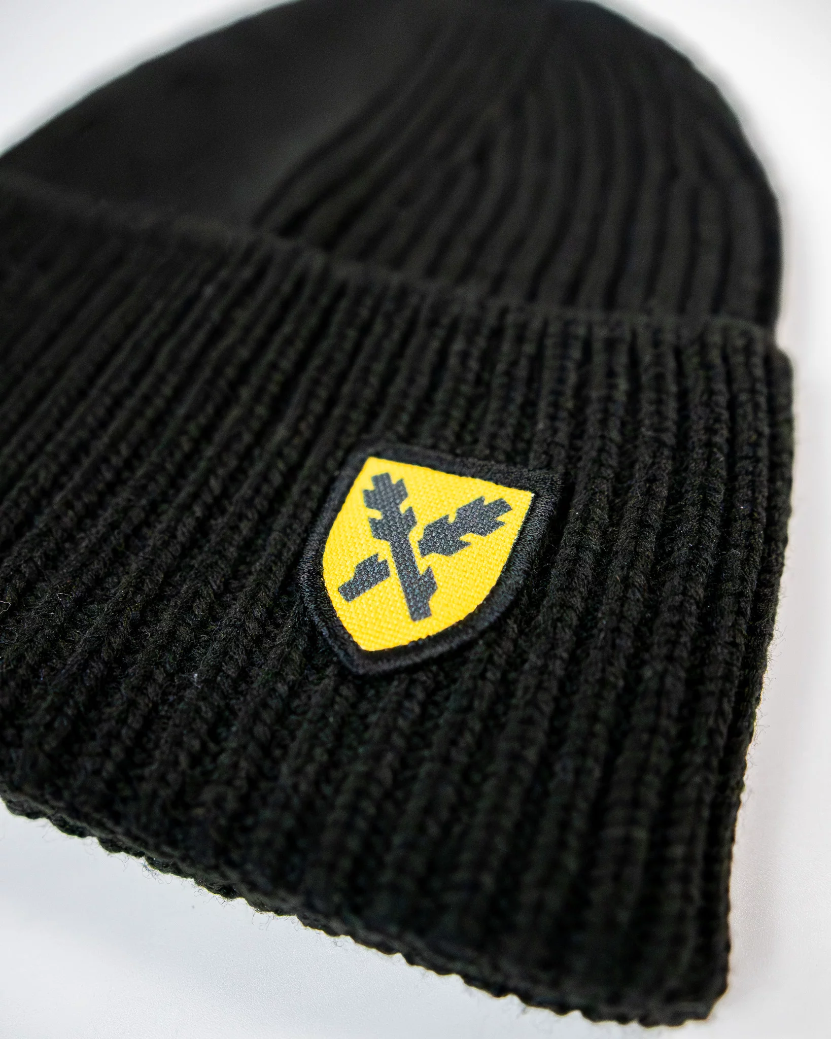 Wenn selbst den Edelleuten kalt wird, kommt die Mütze ins Spiel, die eines Adeligen würdig ist. Die elegante schwarze Mütze ist mit dem Wappen von Hans Capon von Pirkstein bestickt und trägt ein dezentes KCD-II-Label auf der Rückseite. Gefertigt aus innovativem Polylana – der nachhaltigen Alternative zu Wolle und Acryl, die Weichheit, Wärme und Langlebigkeit vereint. Das grobe Chunky-Rib-Strickmuster mit breitem Umschlag behält perfekt seine Form und hält euch bei jedem Ausritt aus Rattay ins Abenteuer warm.