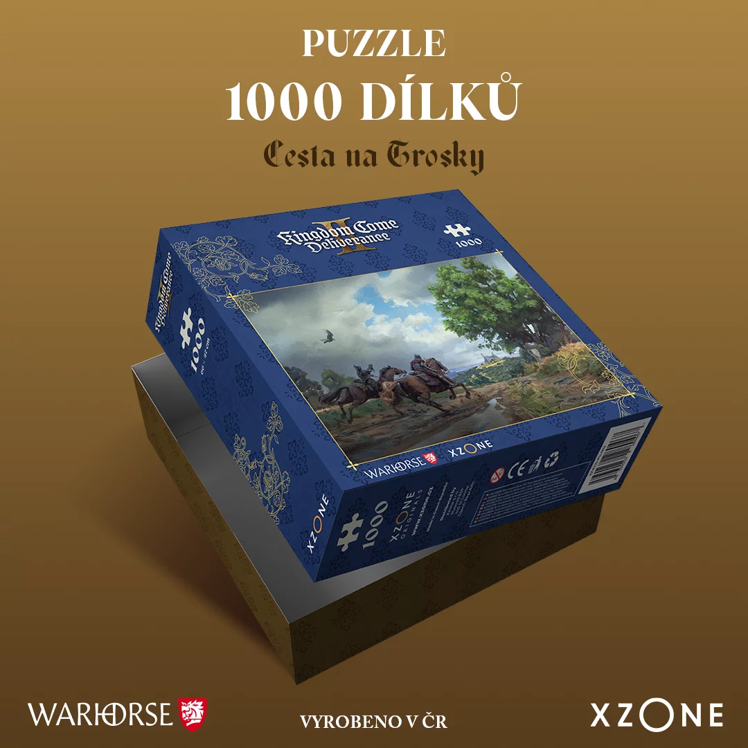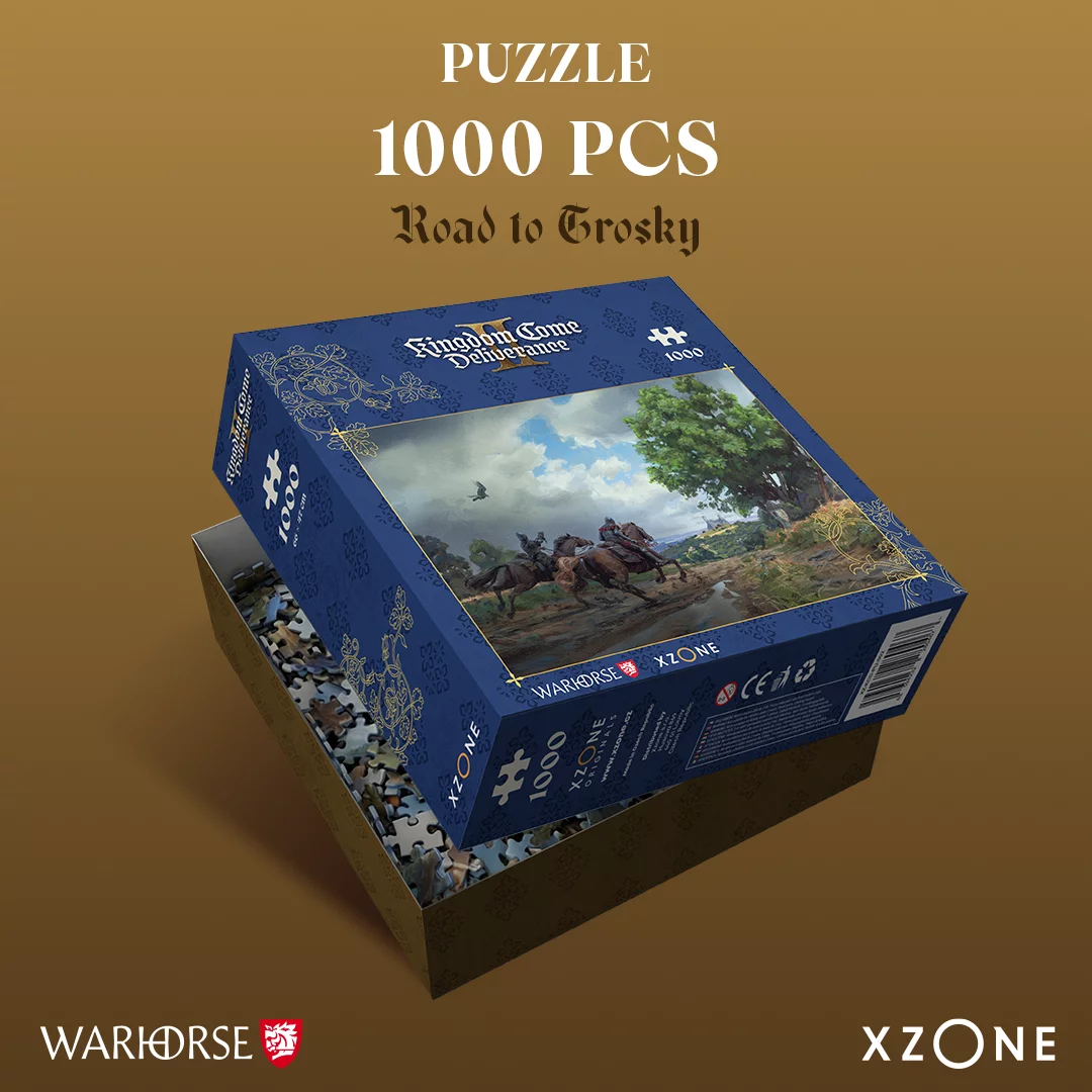 Dieses Motiv kennen viele Spieler als eine der Ladebildschirme – es zeigt Heinrich und Herrn Ptáček auf ihrer Reise zur majestätischen Burg Trosky. Das Gemälde im impressionistischen Stil fängt die Atmosphäre der Landschaft, in der die Geschichte des zweiten Teils spielt, perfekt ein. Dank der 1000 Teile könnt ihr jeden Pinselstrich im Detail genießen. Eine perfekte Wahl für alle, die sich ein Kunstwerk aus Kingdom Come: Deliverance II in origineller Form nach Hause holen möchten.