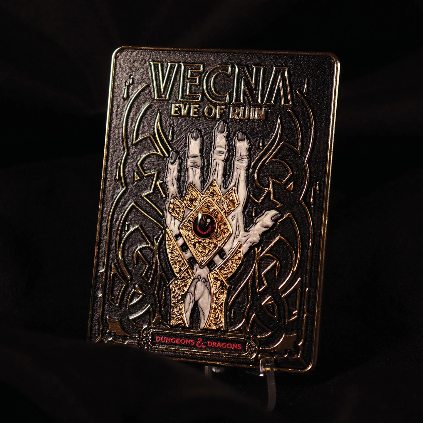 Hinterlasst einen Hauch dunkler Magie in eurer Sammlung – mit dieser offiziellen, limitierten Plakette inspiriert von Dungeons & Dragons: Vecna – Eve of Ruin. Die hochwertige Metallausführung mit markantem Relief betont die ikonische Darstellung von Vecnas Hand und den mystischen Runen, die sofort die Aufmerksamkeit jedes DnD-Fans auf sich ziehen.