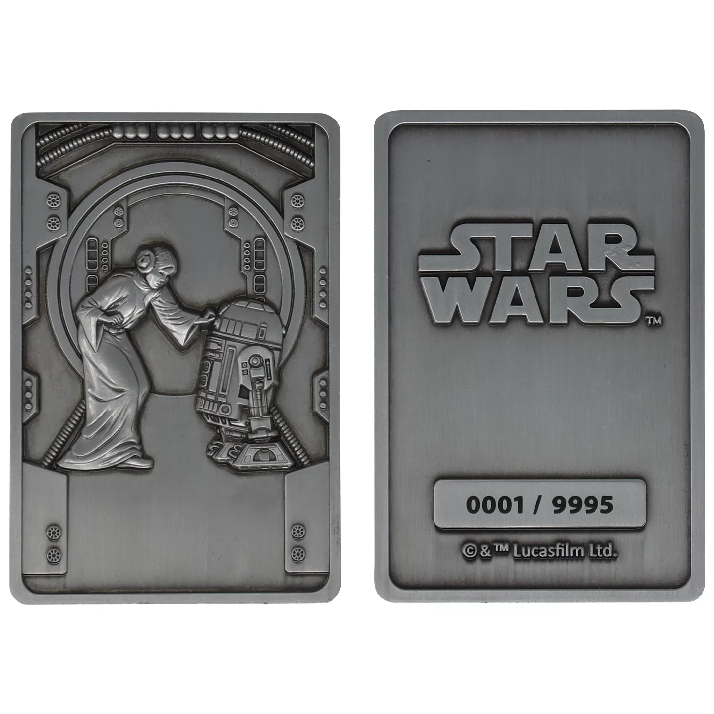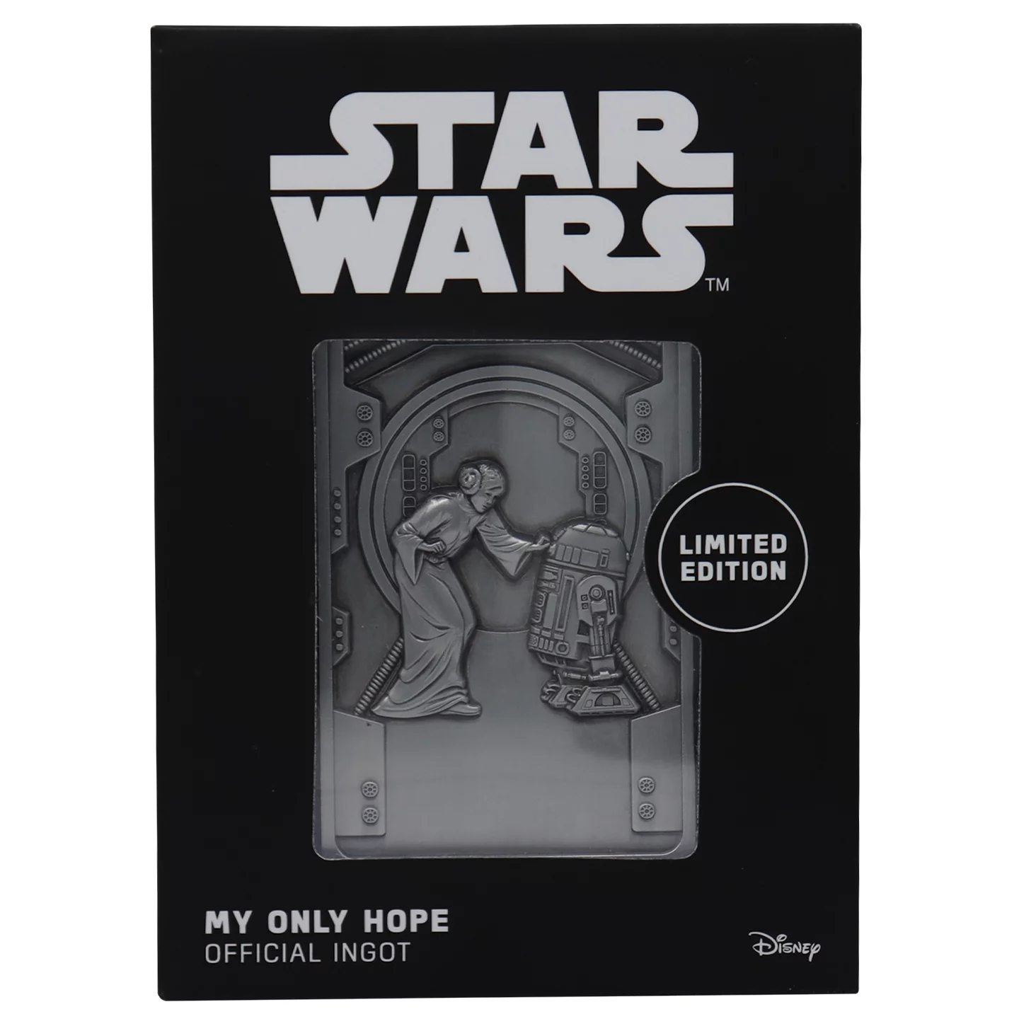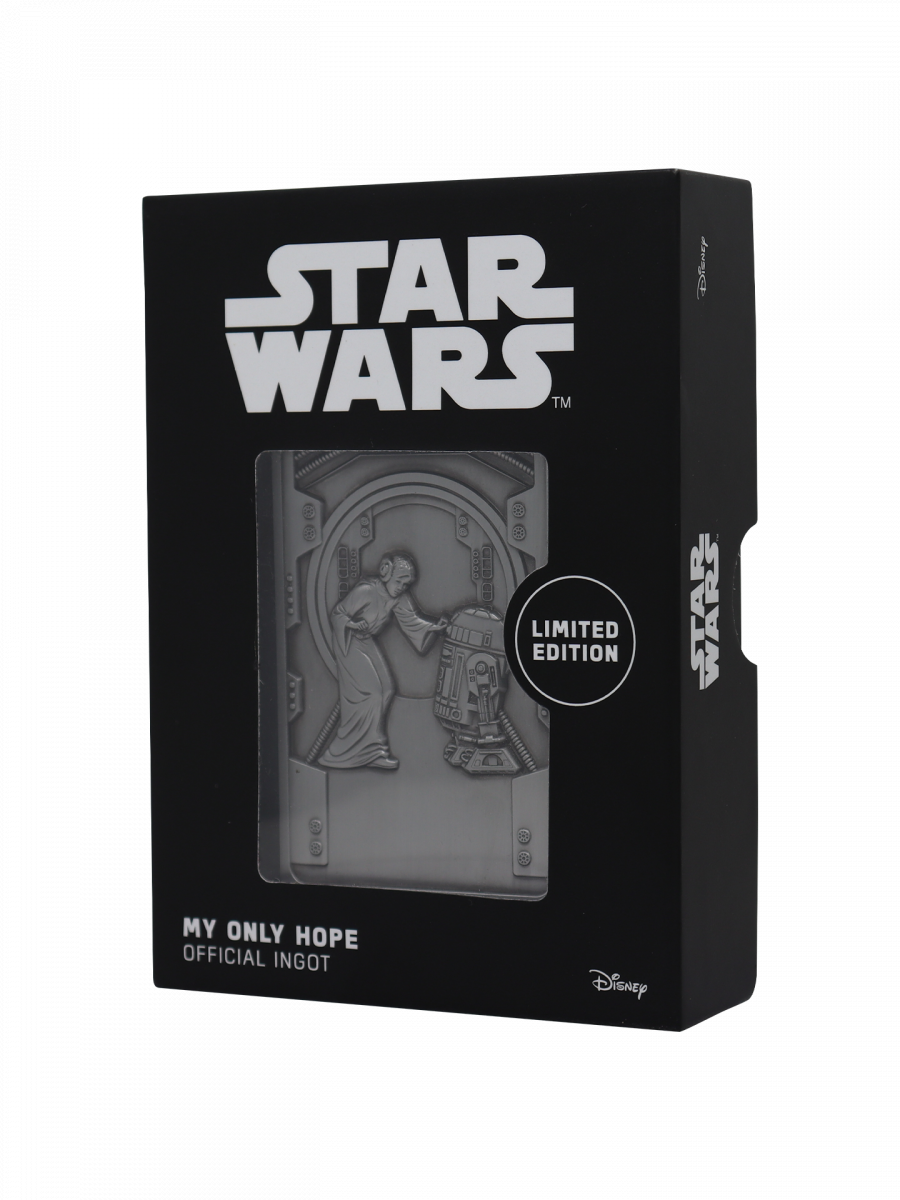 Einer der ikonischsten Momente der gesamten Saga – und diese Sammlerplakette holt ihn direkt in eure Vitrine. Die metallene Star Wars – My Only Hope Ingot-Plakette zeigt Prinzessin Leia, wie sie dem treuen Droiden R2-D2 ihre Botschaft übergibt, dargestellt in einem wunderschönen Relief mit fein ausgearbeiteten Details.