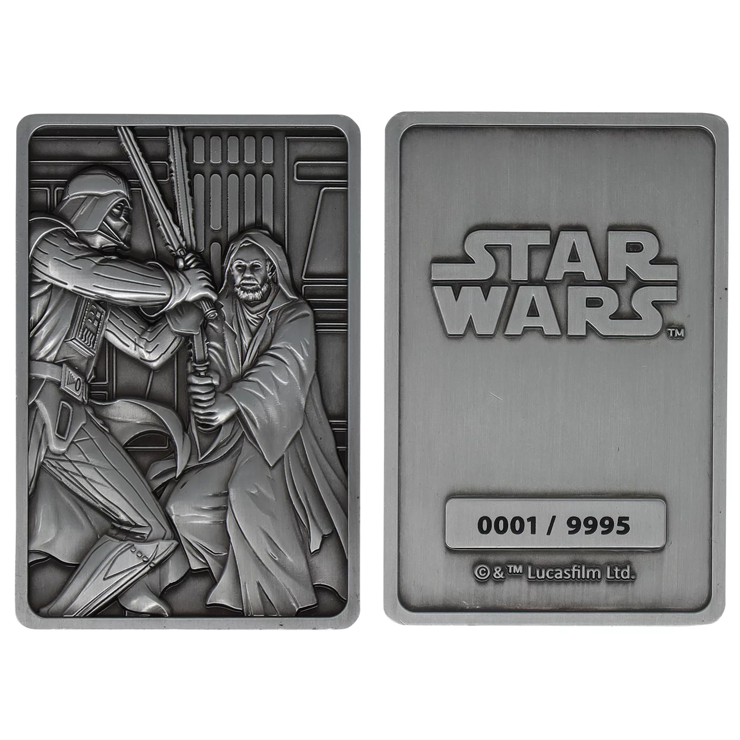 Diese Sammlerplakette zeigt den ikonischen Kampf zwischen Darth Vader und Obi-Wan und ist ein elegantes Metall-Highlight für jeden Fan der Saga. Das geprägte Relief verleiht der Szene beeindruckende Tiefe – und dank des Sammler-Displayständers könnt ihr sie sofort nach dem Auspacken präsentieren.