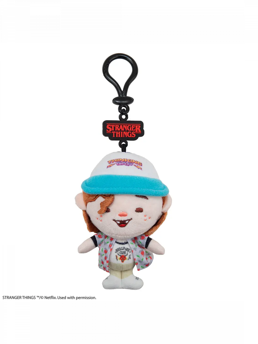 Plüsch-Schlüsselanhänger mit Dustin Henderson, dem beliebten Helden aus Stranger Things, den man sofort an seiner Kappe und seinem ansteckenden Lächeln erkennt. Die süße Gestaltung bringt seine verspielte Art und seinen unverwechselbaren Stil perfekt zur Geltung.