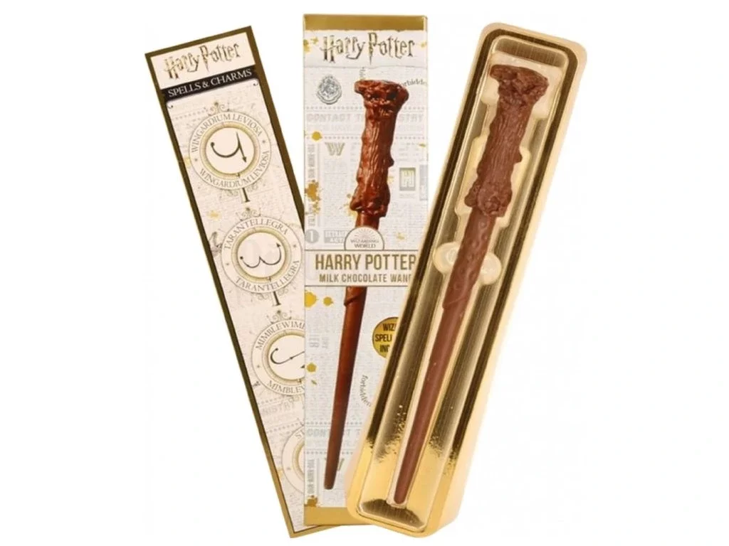 Nach der Buchvorlage besteht der Zauberstab von Harry Potter aus Stechpalmenholz und birgt im Inneren eine Phönixfeder – unserer hingegen ist aus unwiderstehlich zarter Milchschokolade gemacht.