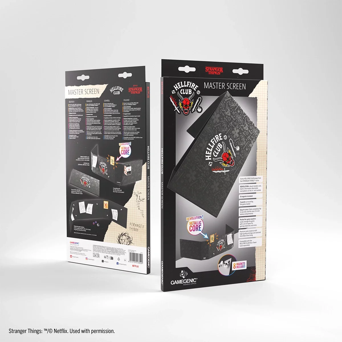 Der Hellfire Club: Master Screen ist ein stylischer magnetischer Spielleiterschirm und ein unverzichtbares Accessoire für jeden Stranger Things™-Fan. Mit seinem ikonischen Design bringt er die Atmosphäre einer der beliebtesten Netflix-Serien direkt auf euren Spieltisch.