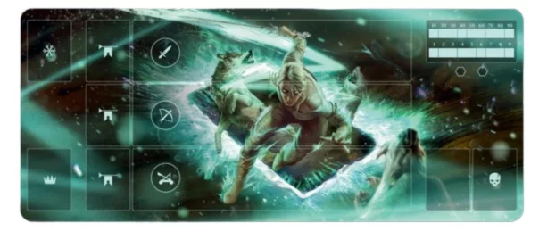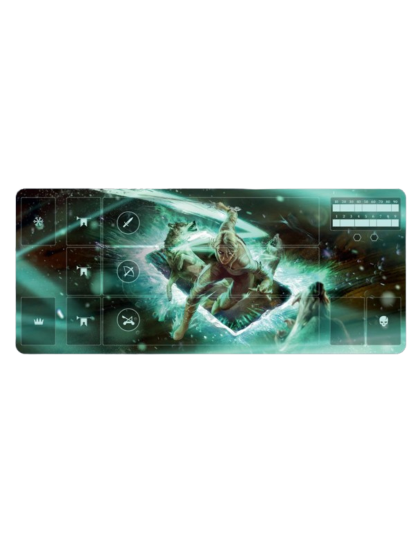 Die atemberaubende Grafik ist auf einer hochwertigen Spielmatte mit rutschfester Oberfläche gedruckt, die eure Karten und Zubehör während des Spiels schützt.