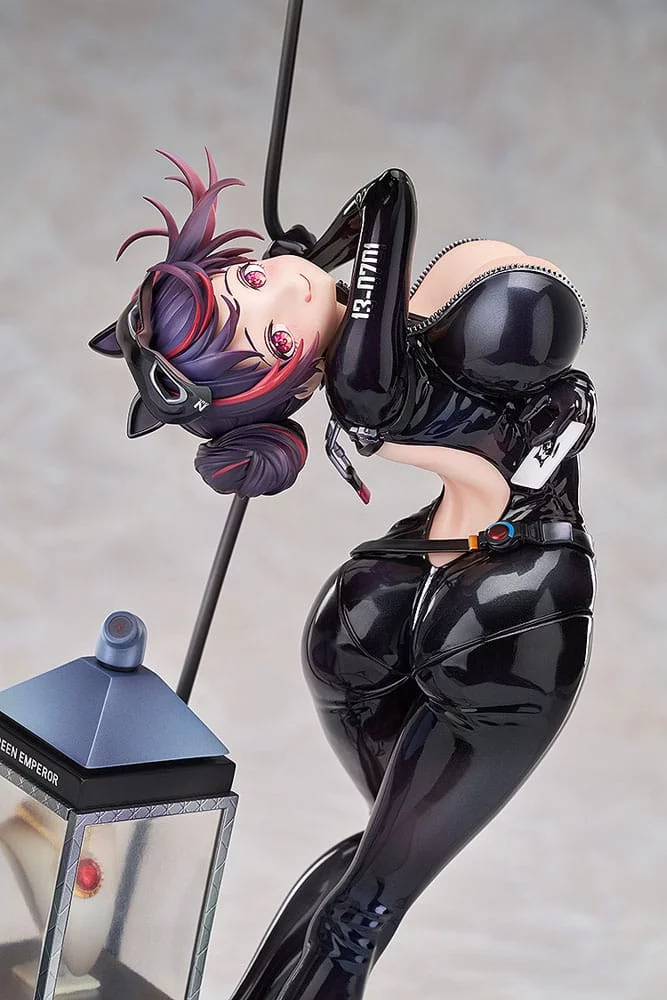Good Smile Company hat Quency im Maßstab 1/7 meisterhaft in einem Latexanzug mit ikonischem Schmuck im Hintergrund dargestellt, was ihren Stil und Charme perfekt einfängt. Die dynamische Pose, glänzende Details und ein luxuriöser Sockel machen diese Figur zu einem einzigartigen Sammlerstück, das sofort alle Blicke auf sich zieht.