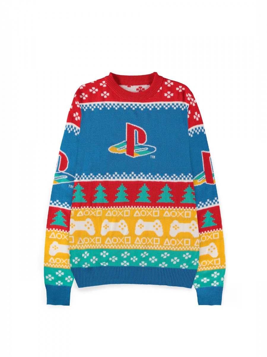 Weihnachten im Zeichen von PlayStation? Klar, das ist ein Must-have! Dieser bunte Pullover mit dem ikonischen Logo und Controller-Motiven bringt jede Gaming-Session und jede Weihnachtsfeier zum Strahlen.