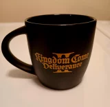 Stylische Tasse mit dem Logo des lang erwarteten tschechischen Mittelalter-Videospiels Kingdom Come: Deliverance II von Warhorse Studios. Die Tasse ziert das Symbol von KCD II in strahlendem Gold, ergänzt durch den Titel des Spiels.