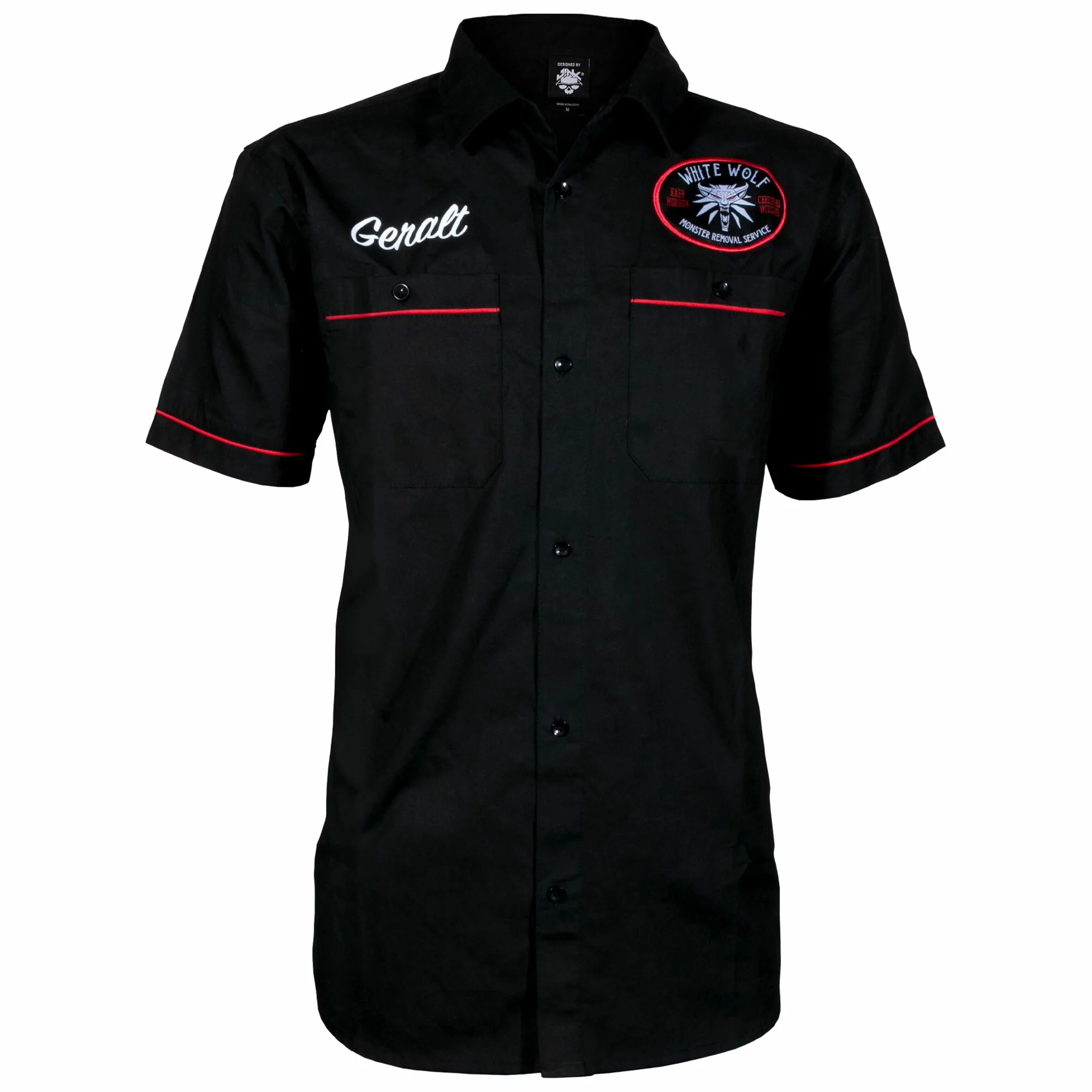 Ein wirklich ungewöhnliches Accessoire für alle Fans des Geralt von Rivia und des Spiels The Witcher 3: Wild Hunt (Witcher 3: Wild Hunt). Wenn Sie Monster loswerden müssen, dann rufen Sie den White Wolf Monster Removal Service an! Ein witzig gestaltetes Stück in Form eines Bowlinghemdes von der Firma Jinx.