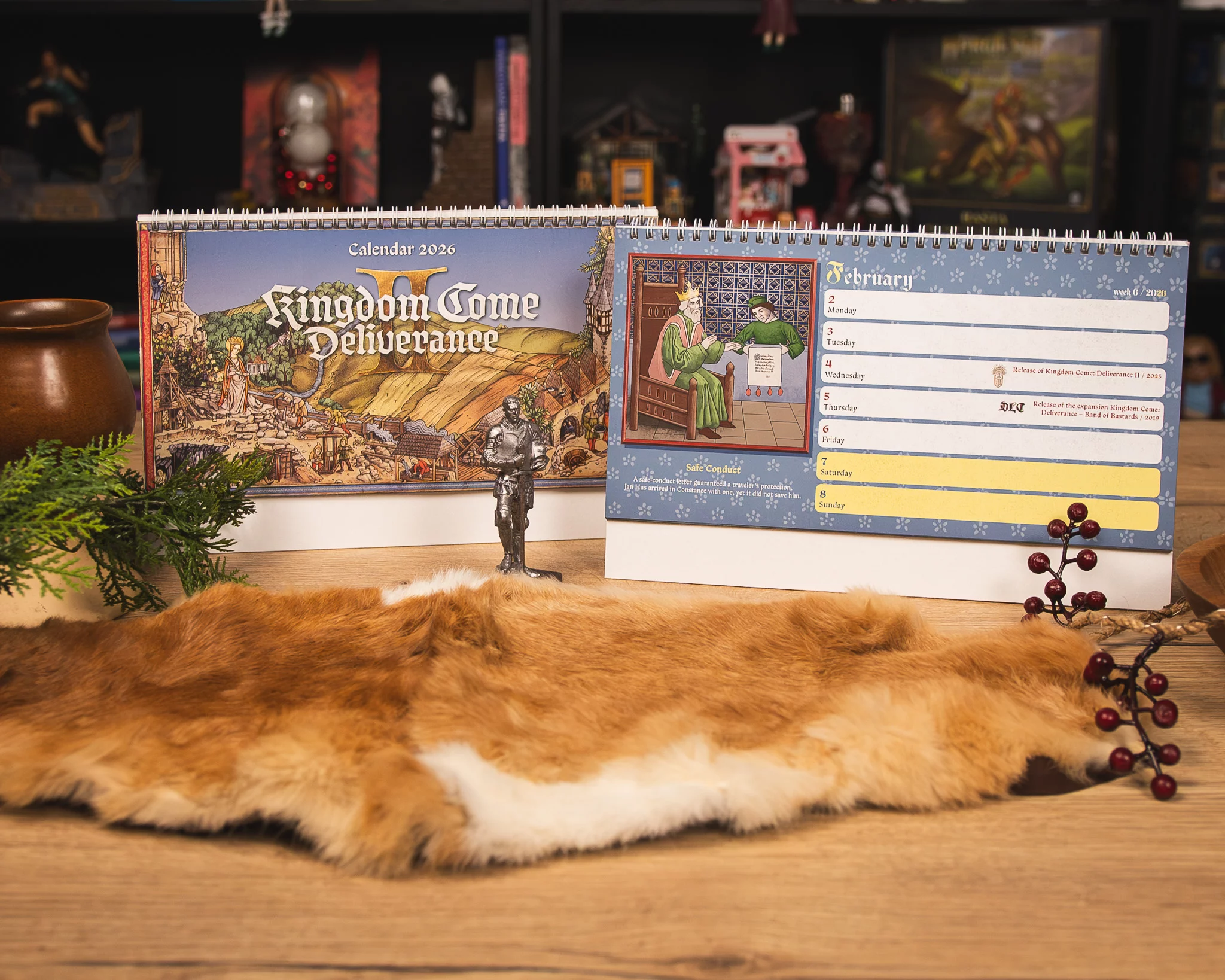 Erlebt das Jahr 2026 im mittelalterlichen Rhythmus – mit dem offiziellen Tischkalender zu Kingdom Come: Deliverance II. Jede Woche wird von einer Illustration aus dem Spielkodex begleitet und enthüllt spannende Einblicke – von Schlachten und Lagerleben bis hin zu Festen und Bräuchen des damaligen Böhmens.