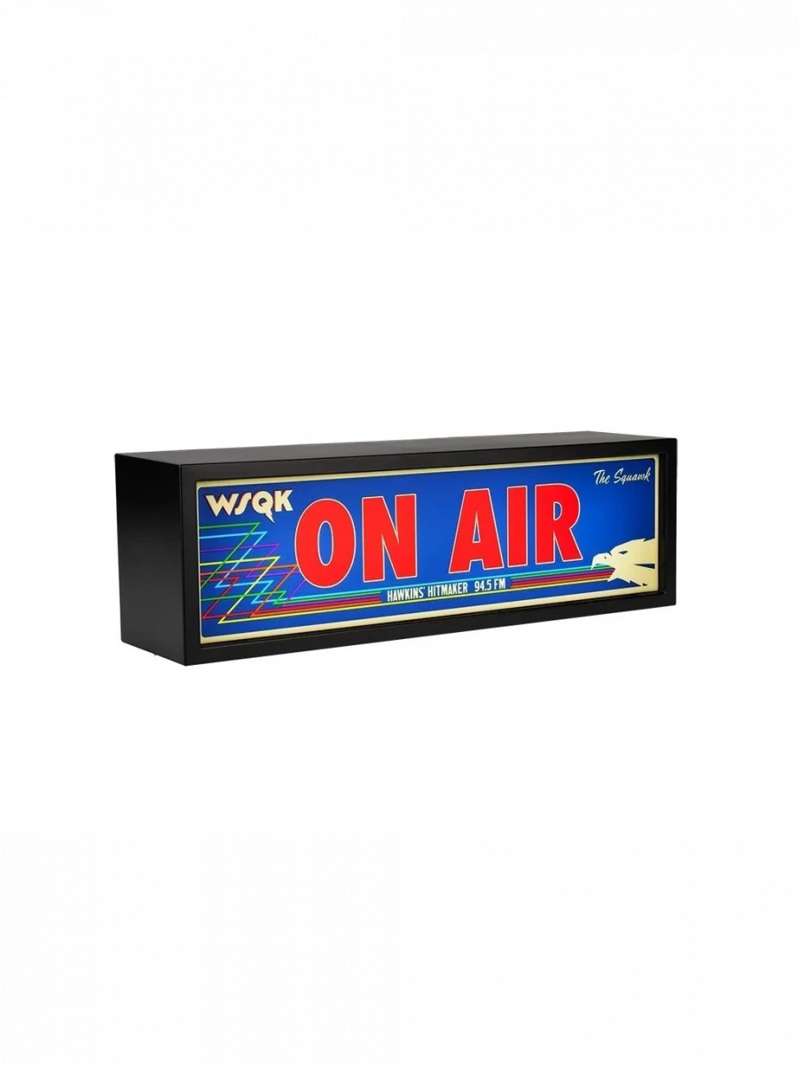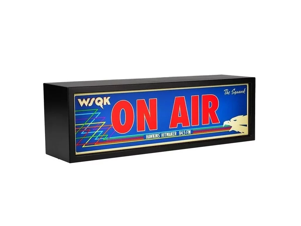 Stylische Stranger-Things-Lampe – On Air im Stil des WSQK-Radios aus der Stadt Hawkins. Beim Einschalten leuchtet der Schriftzug „ON AIR“ in rotem Licht und verleiht eurem Zimmer die Atmosphäre der Serie. Ein perfektes Accessoire für alle Fans von Stranger Things und Retro-Design. Betrieb über USB oder Batterien.Abmessungen: 9,6 x 8 x 30 cm