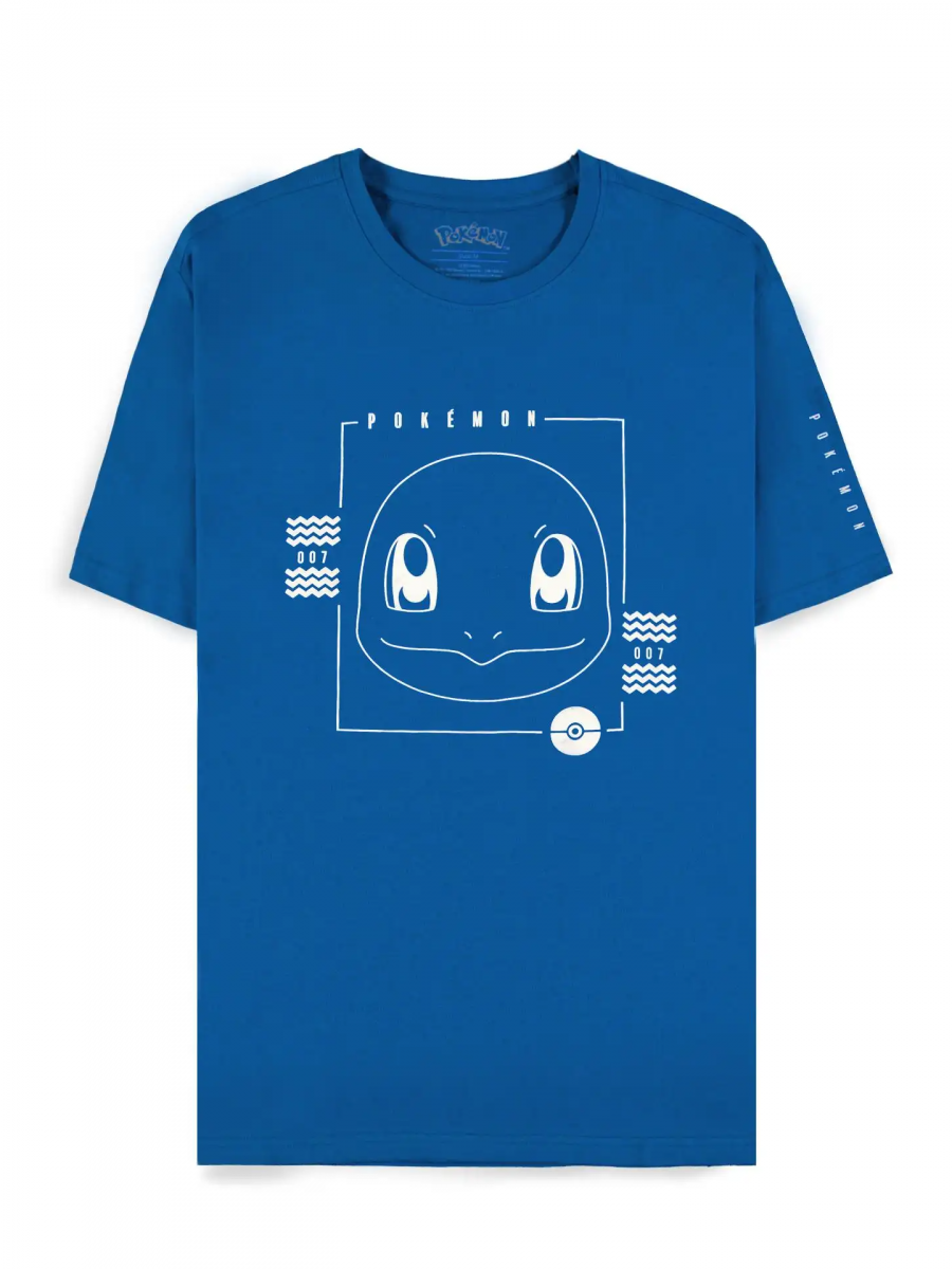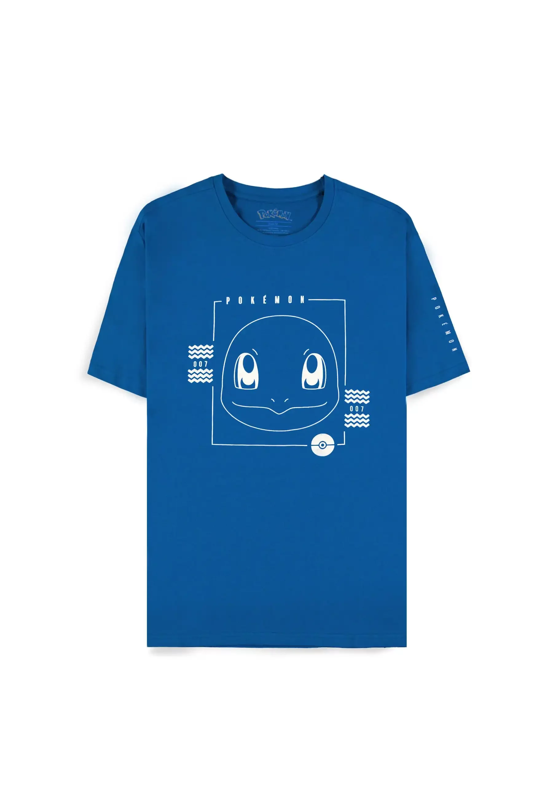 Stylisches blaues T-Shirt mit einem minimalistischen Squirtle-Motiv – einem der ursprünglichen Pokémon der ersten Generation.