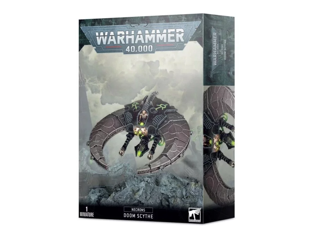 Doom Scythe ist eine furchteinflößende fliegende Kriegsmaschine der Necrons, die mit eiskalter Präzision Zerstörung aus der Luft bringt. Ihr charakteristischer halbkreisförmiger Rumpf und ihre tödliche Bewaffnung machen sie zu einem ikonischen Stück necronischer Technologie, das auf dem Schlachtfeld sofort Aufmerksamkeit und Respekt auf sich zieht.