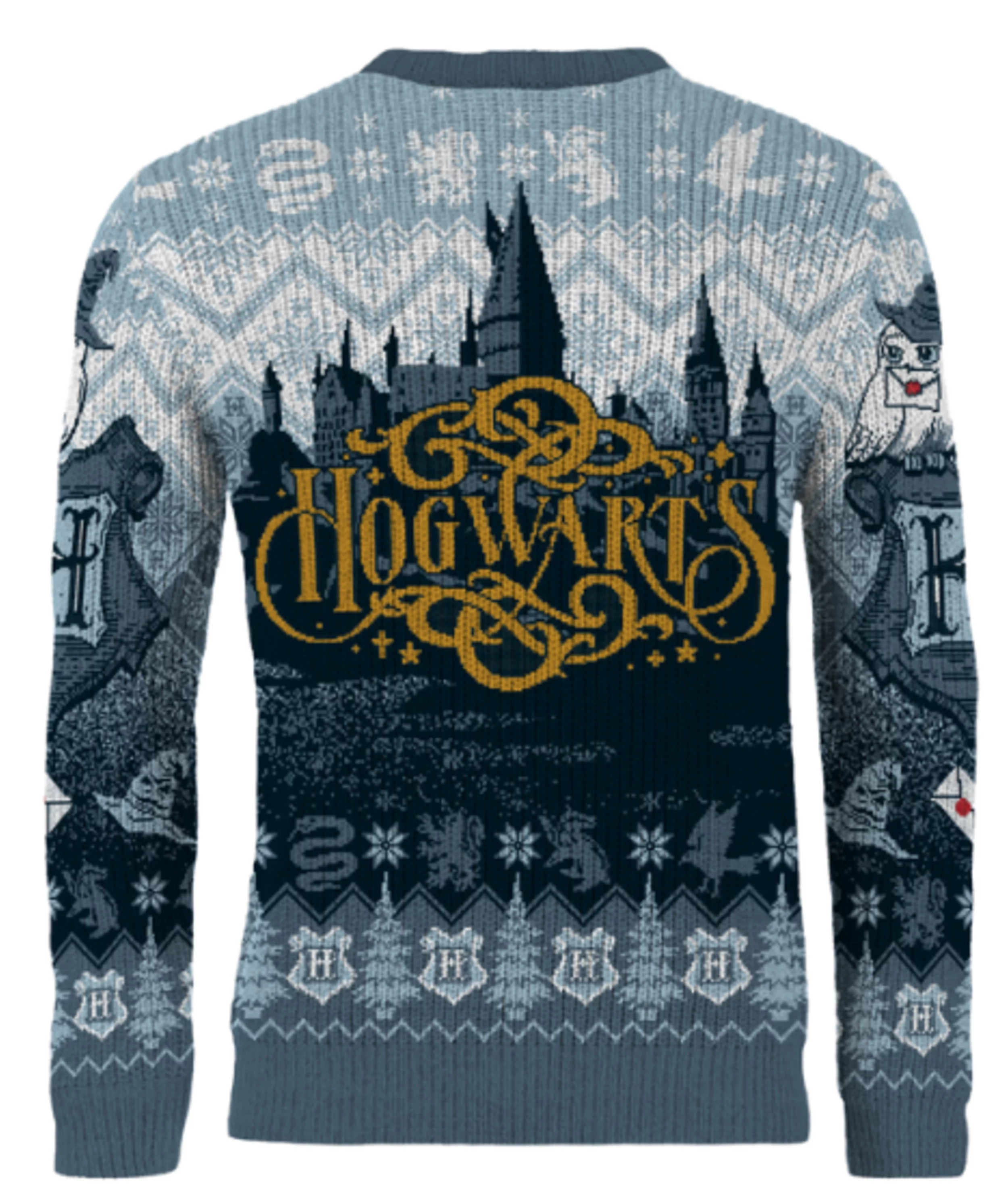 Harry Potter Pullover – Hogwarts Christmas ist der perfekte Begleiter für die festliche Jahreszeit – für jeden Zauberer und Muggel. Die Vorderseite ziert das Wappen von Hogwarts mit den Tieren der vier Häuser, auf der Rückseite prangt die Silhouette der majestätischen Schule mit dem Schriftzug Hogwarts. Coole Wintermuster und magische Details verleihen dem Pullover eine zauberhafte Atmosphäre, sodass du dich fühlst wie bei einem Weihnachtsbankett in der Großen Halle.Material: 100% Acryl