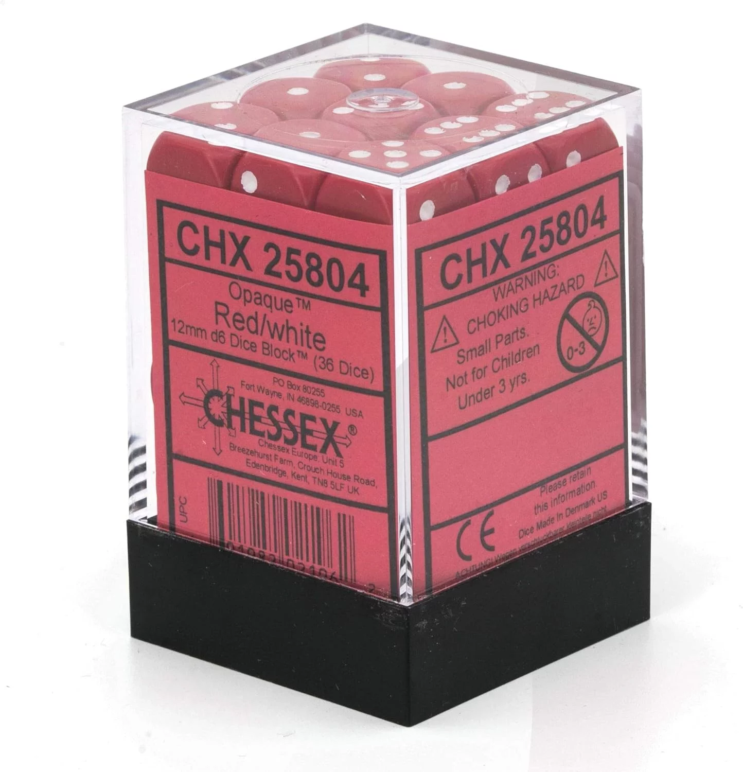 Satz sechsseitiger Würfel Chessex Opaque – Red (36 Stück) im klassischen roten Design mit weißen Punkten bietet hervorragende Sichtbarkeit und einen eleganten Kontrast.